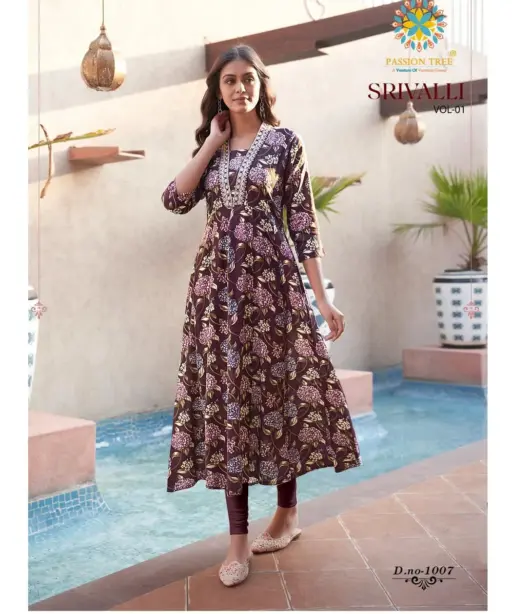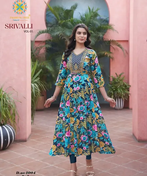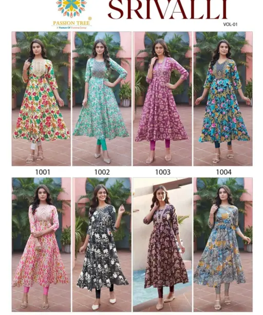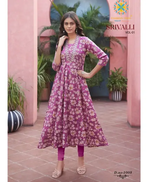 Passion Tree Srivalli Vol1 Wholesale Anarkali Printed Kurti With Work
