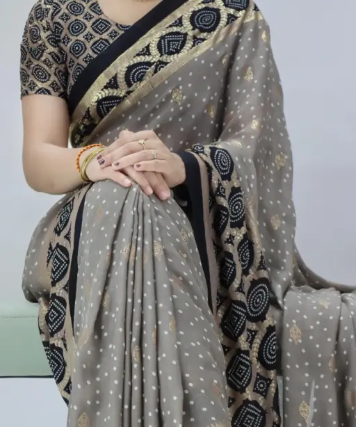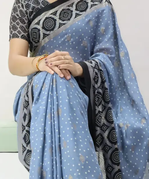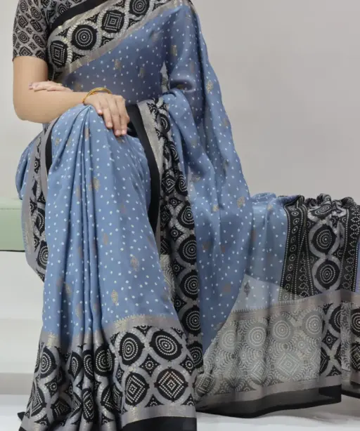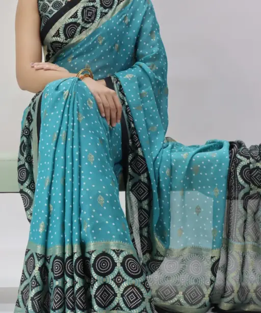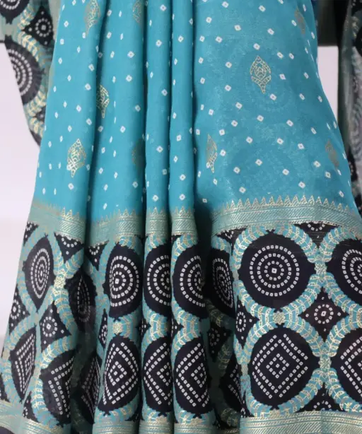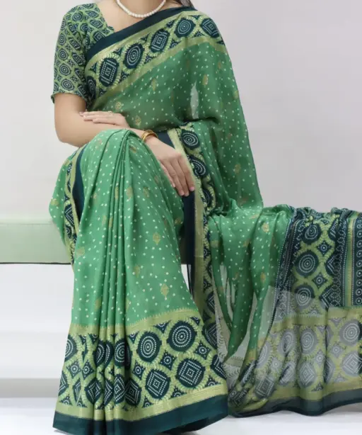 | Saree | Moss Bandhni Printed with Foil work and Contrast Border |