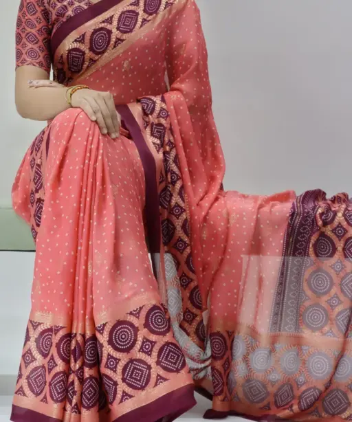 Pastel Color Bandhni Printed Saree Under Budget