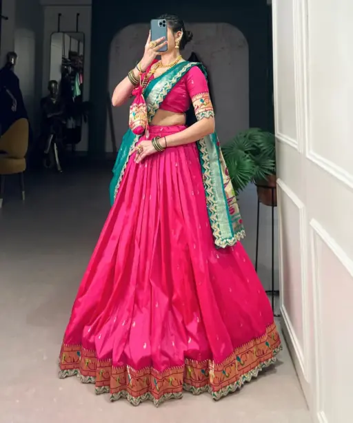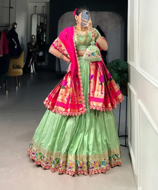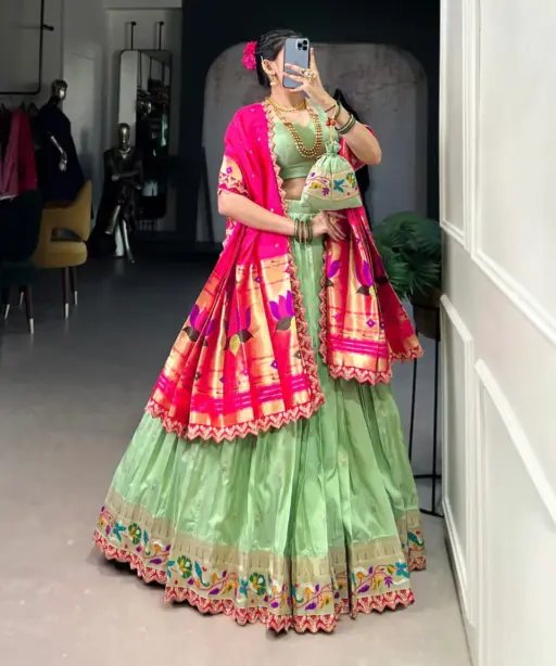 Pastel Color Paithani Silk Lehenga