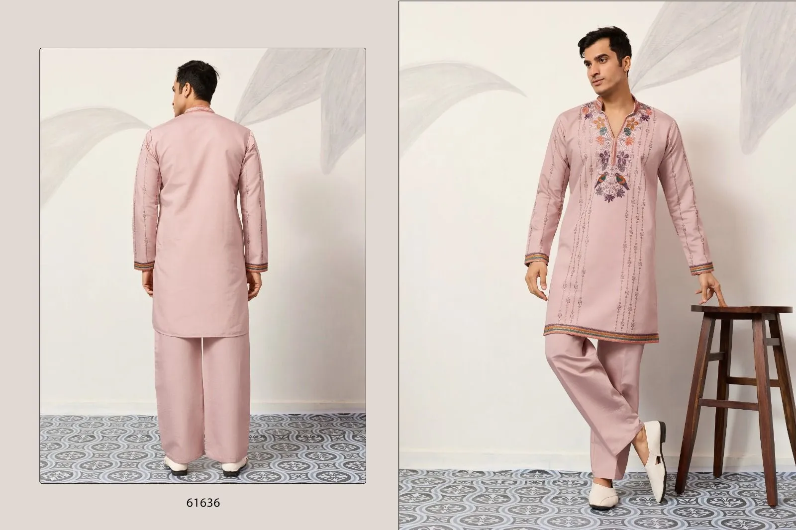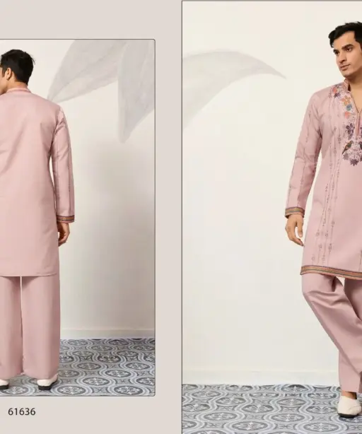 Pastel Color Stylish Mens Embroidery Kurta Set