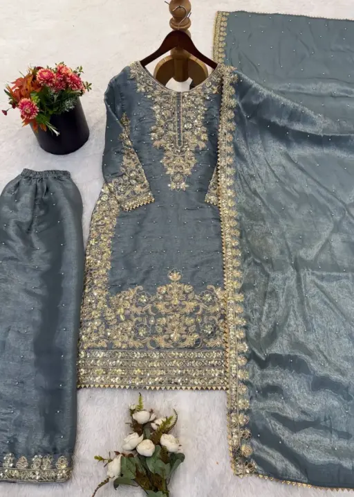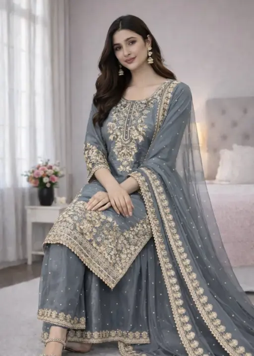 Pastel Gray Pakistani Plazzo set