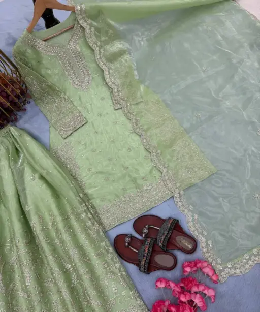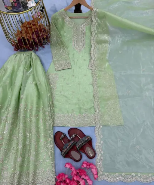 Pastel Pista Pearl Work Pakistani Kurti Set