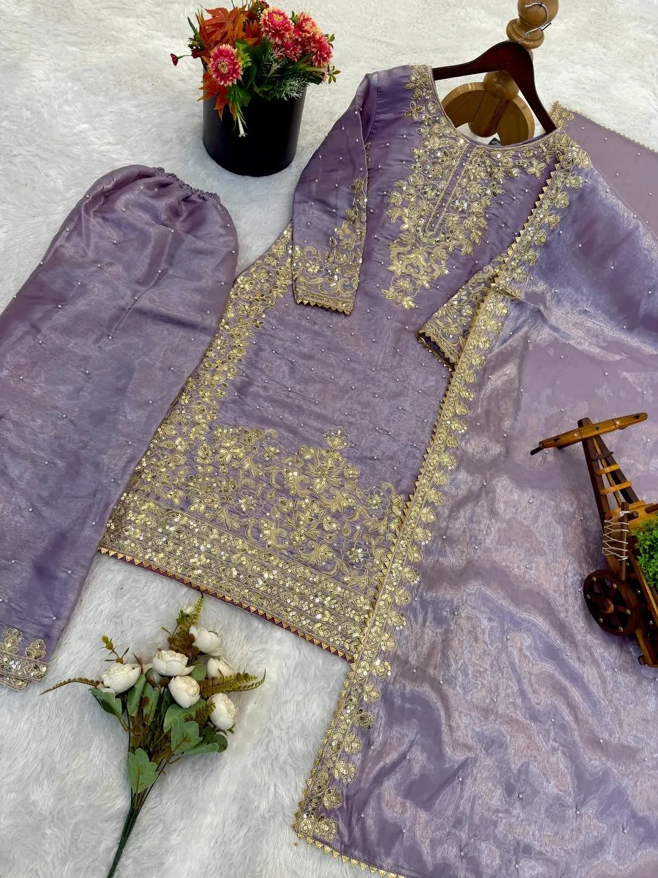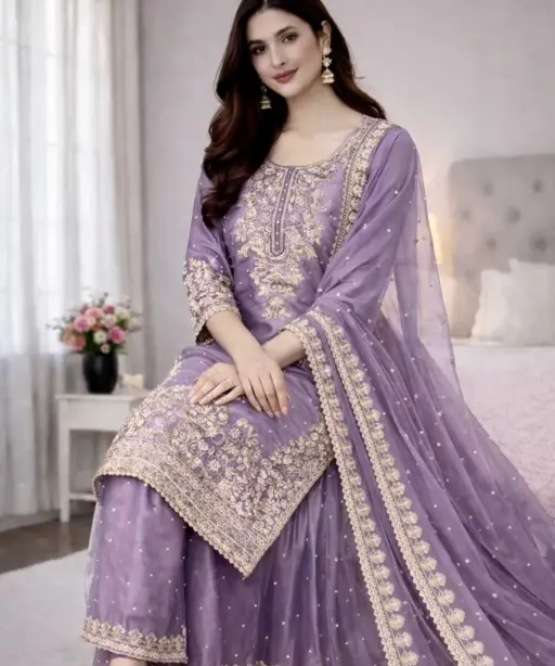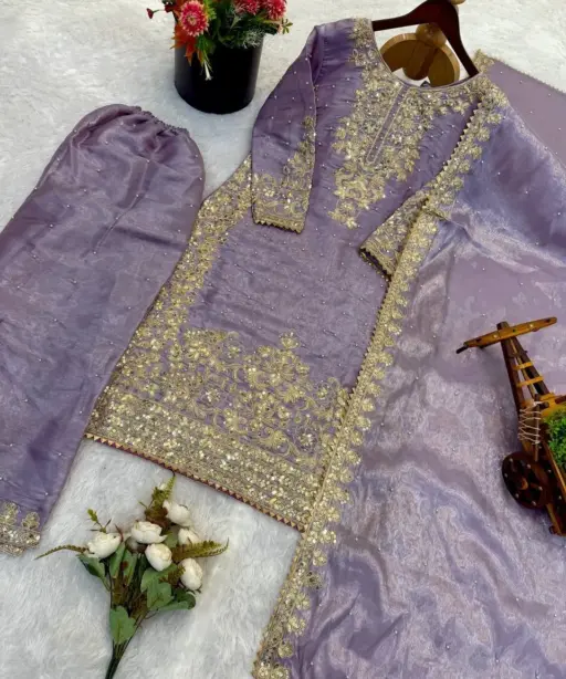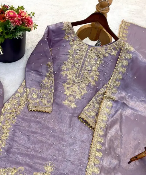 | Top | Pure GMY SILK With Heavy Embroidery Coding Sequence Work With Moti Work and Full Sleeve 41-42 Inch Length |
