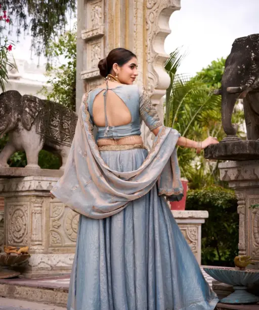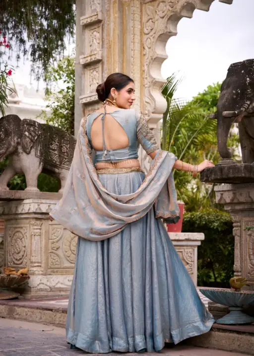 Pastel Sky blue Shiny Party Lehenga