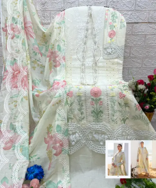| Dupatta | Cotton Print with Embroidery (3 Designs) / Chiffon Print with Embroidery (3 Designs) |