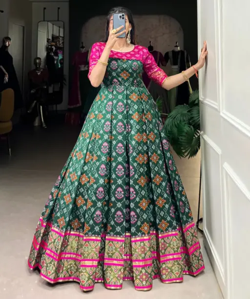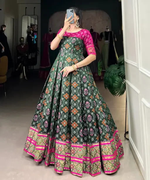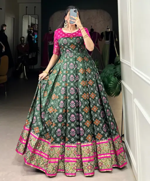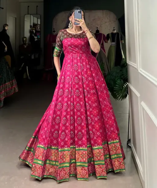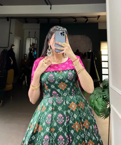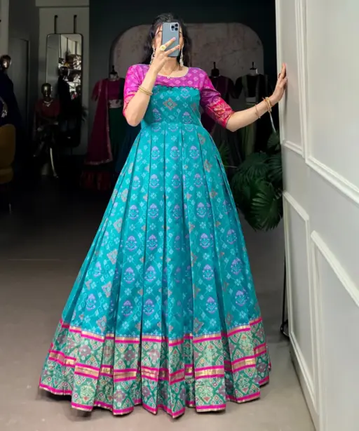| Top | Jacquard Silk with Patola Print and Zari Weaving Work |