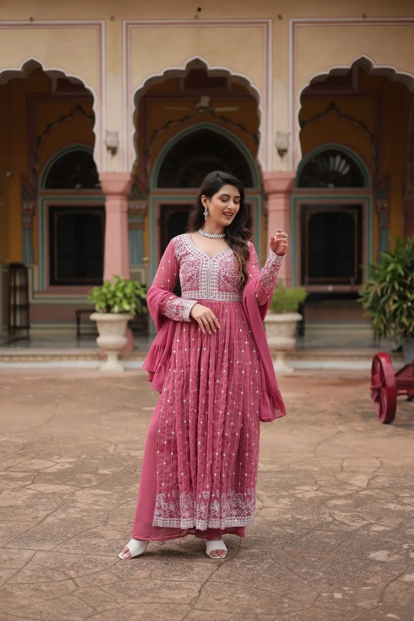 | Top | Faux Georgette with Rich Sequins & Thread Embroidered work 50 Inch Length |