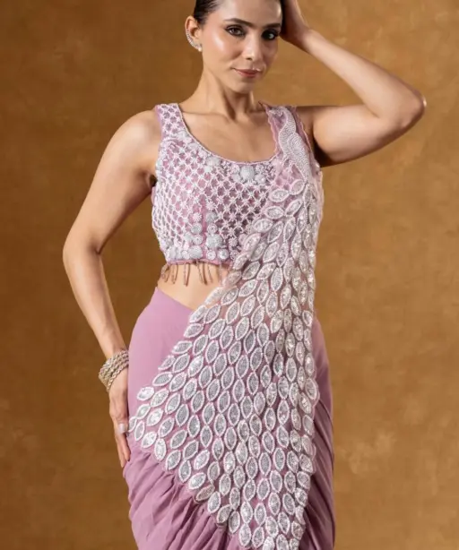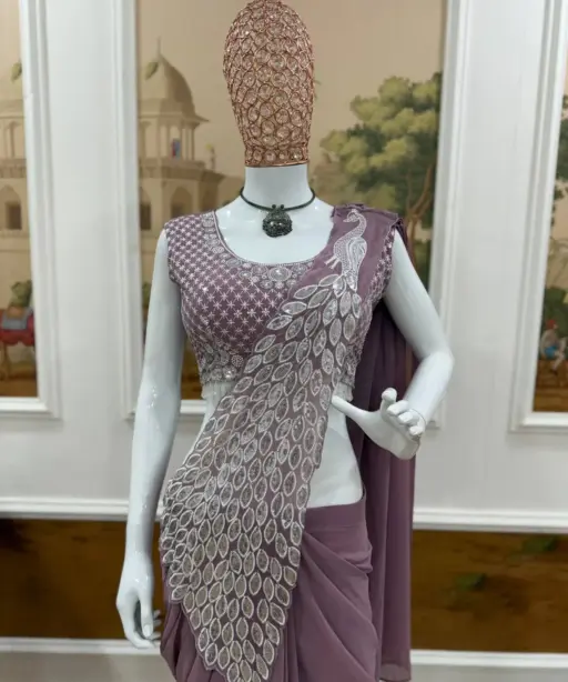 SareeFAUX GEORGETTE EMBROIDERY THREAD & SEQUINS WORK / READY TO WEAR / 5.5 mtr