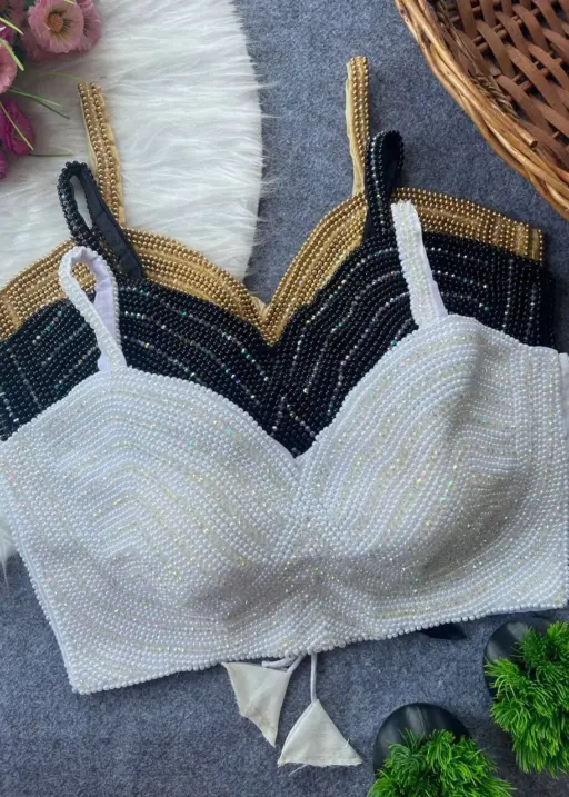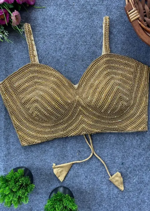 Pearl Moti Spaghetti Blouse Golden Color