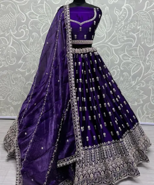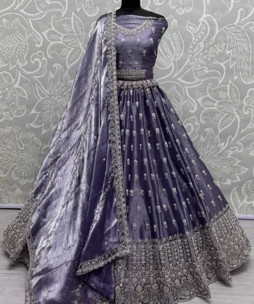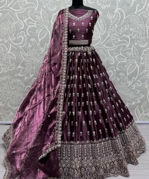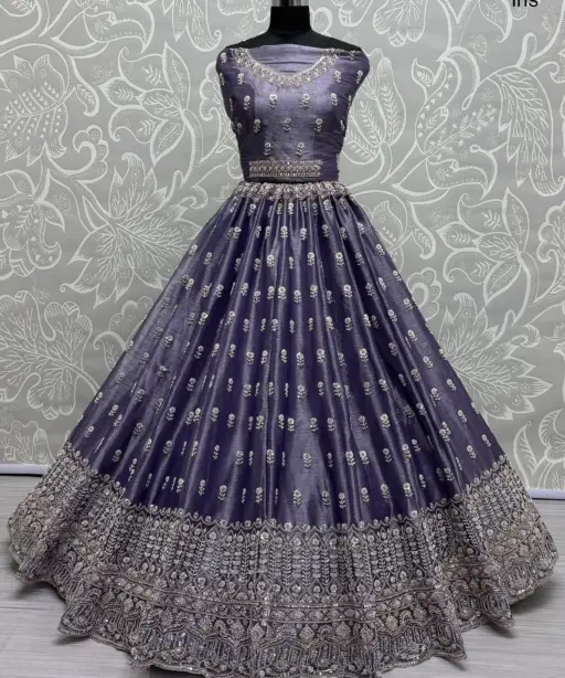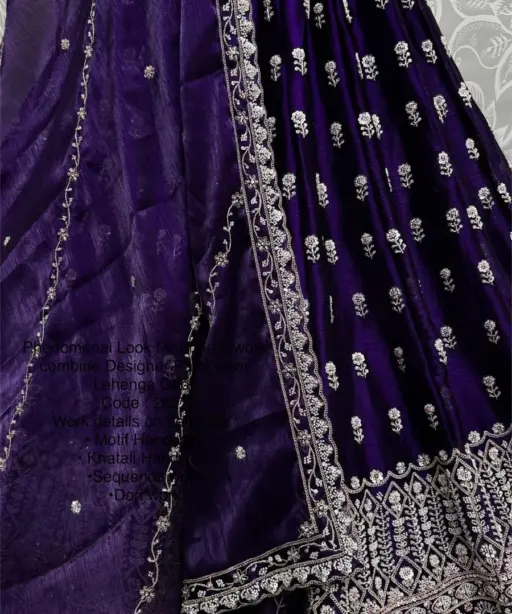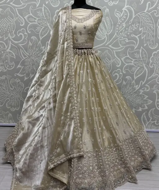 LehengaGold Crush Pure Fabric with Motif Handwork, Khatali Handwork, Sequence Work, and Dori Embroidery; Standard cancan and canvas attached; Free size up to 42