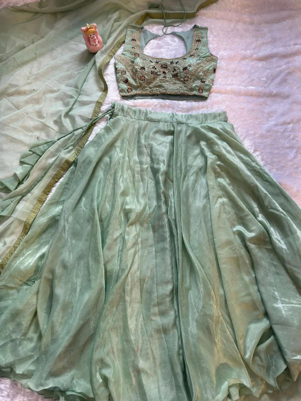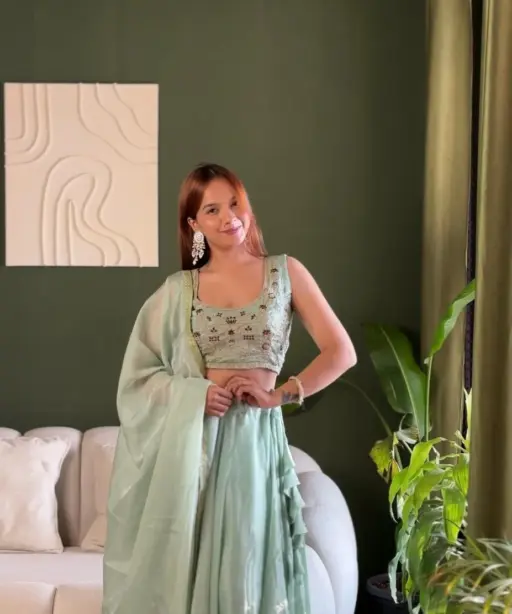| Lehenga | Flowing Farry crush texture lehenga with soft shine finish and approx 4+ mtr flair for a dreamy twirl look |