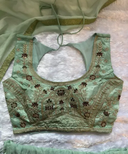 | Blouse | Beautiful heavy embroidery blouse with intricate zari floral work and elegant neckline pattern. (Unstitched Blouse) |