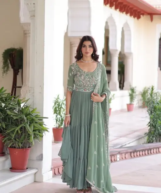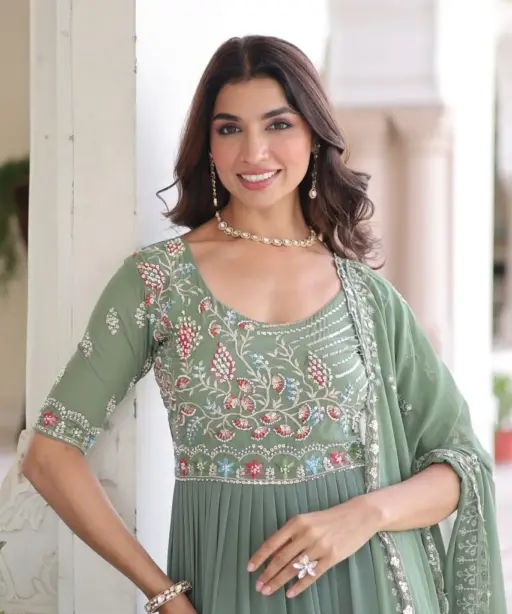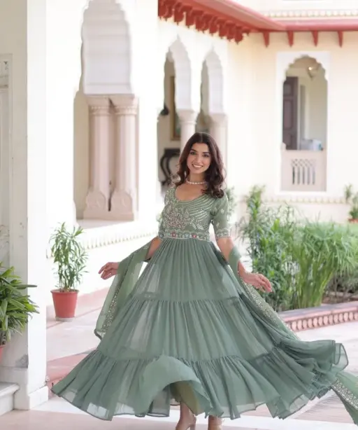 | Top | Faux Blooming with Sequins Multithreaded Beads Embroidered work. FLAIR: 12 MTR, LENGTH: 56 INCH |
