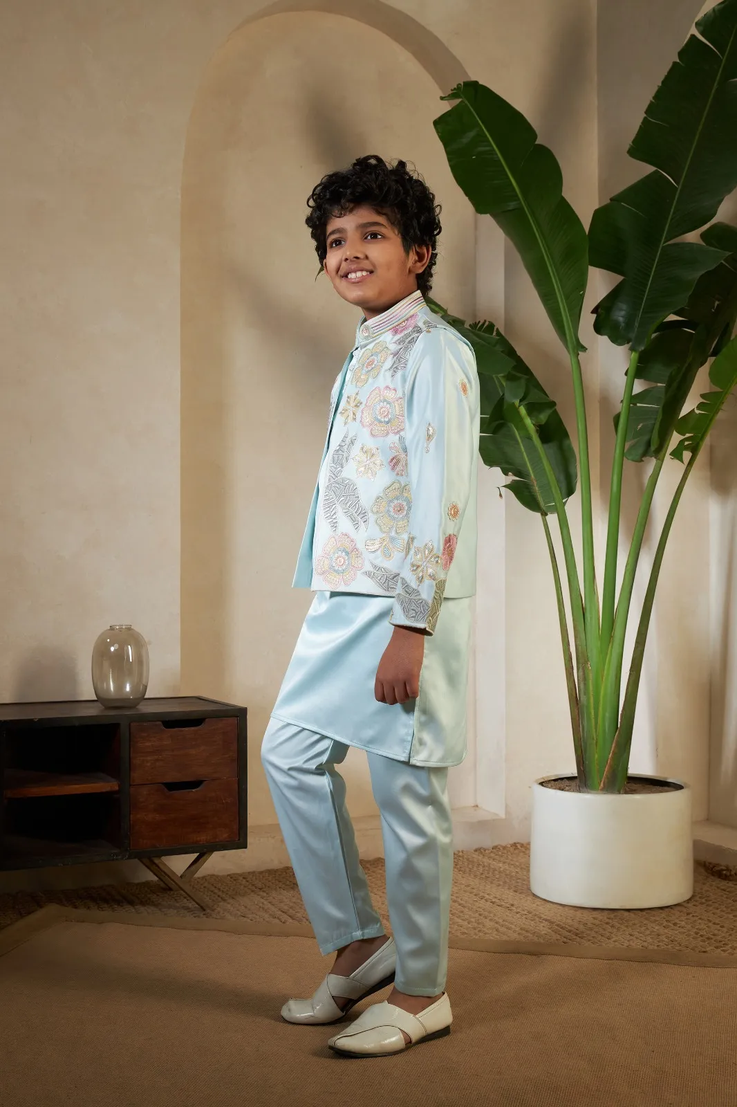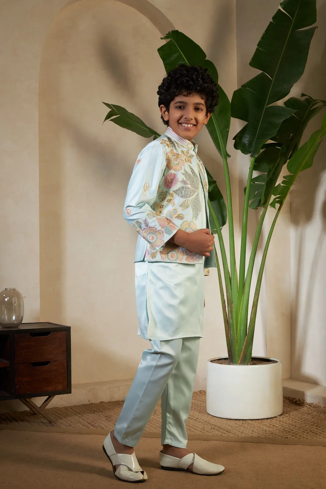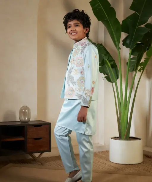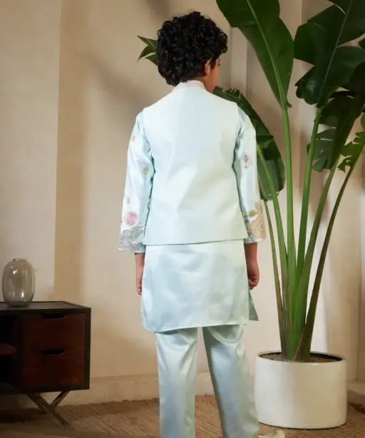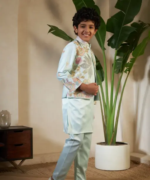 Pista Color small boys wedding kurta with koti