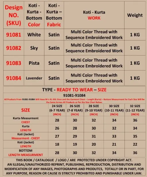 | Kurta | Satin with Multi Color thread and Sequence work |
