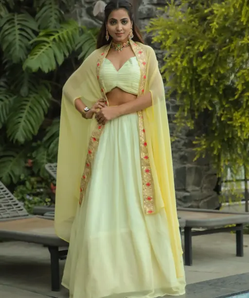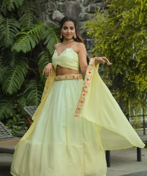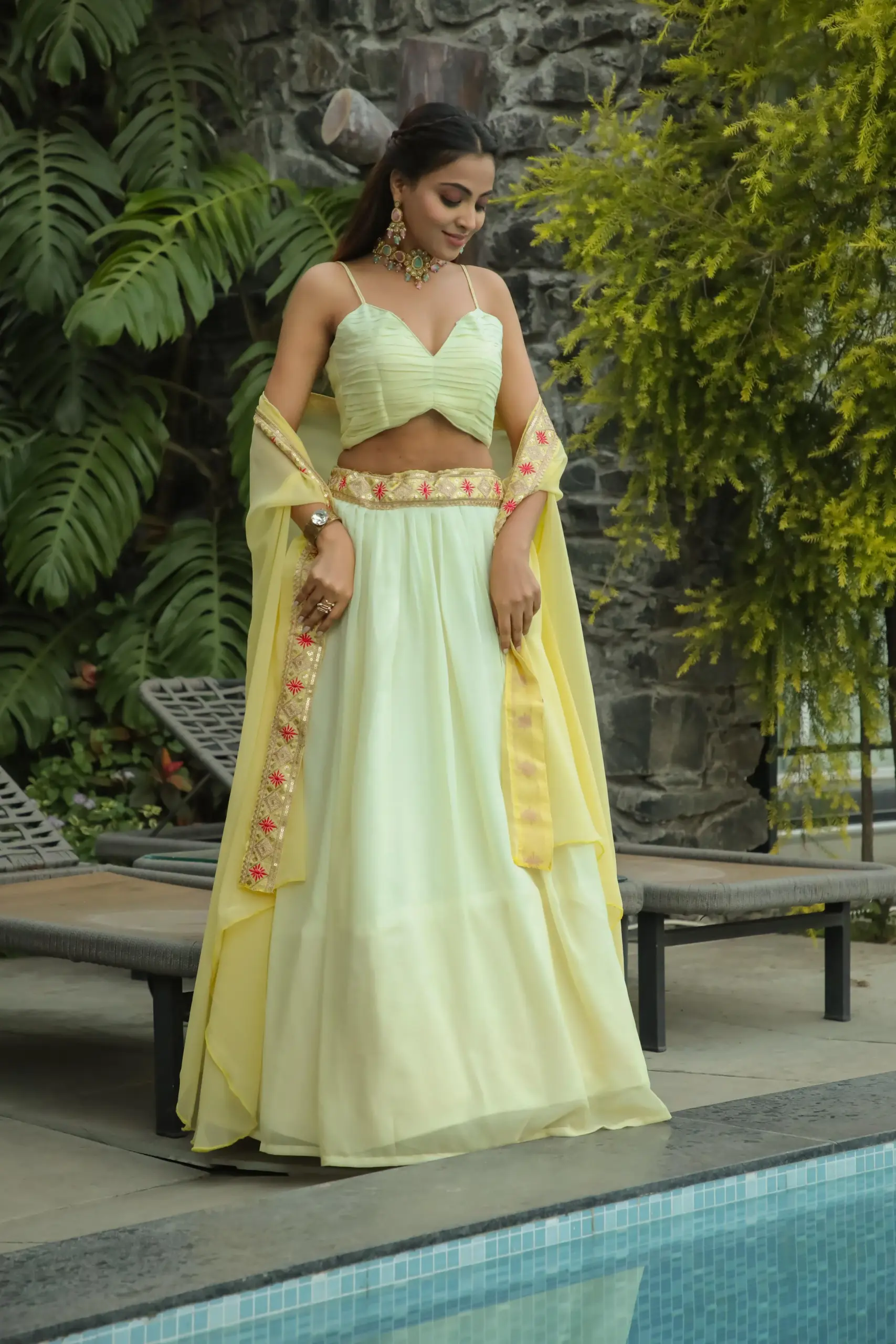 LehengaGeorgette With Thread, Dori & Sequins Work On Waist Border (Cancan Attached)