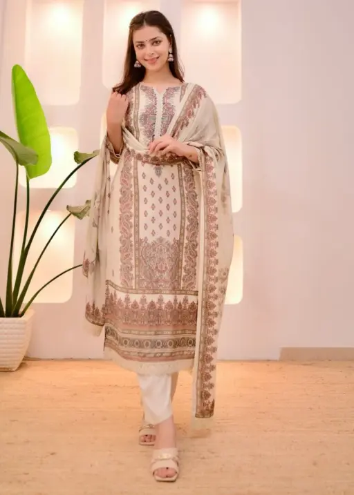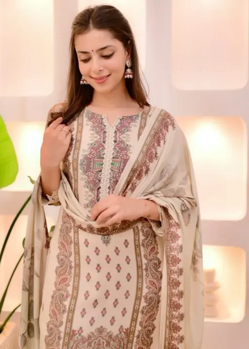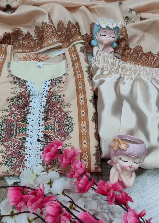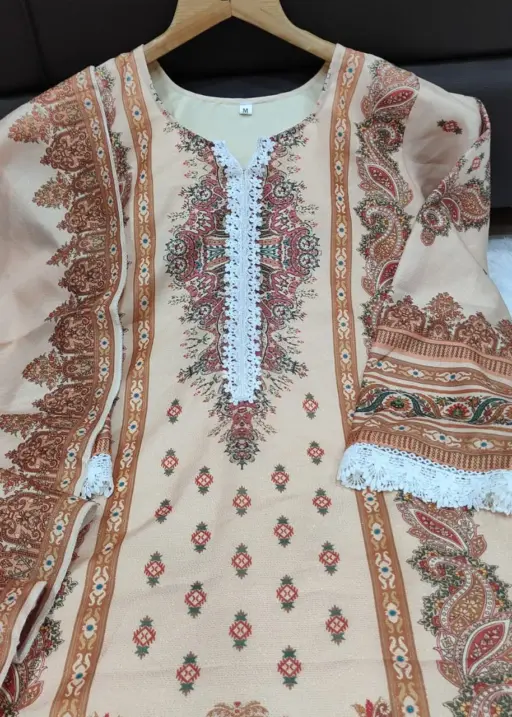 | Top | Heavy Muslim simmer With Digital Print lace works Full Sleeve.45-46 Inch |