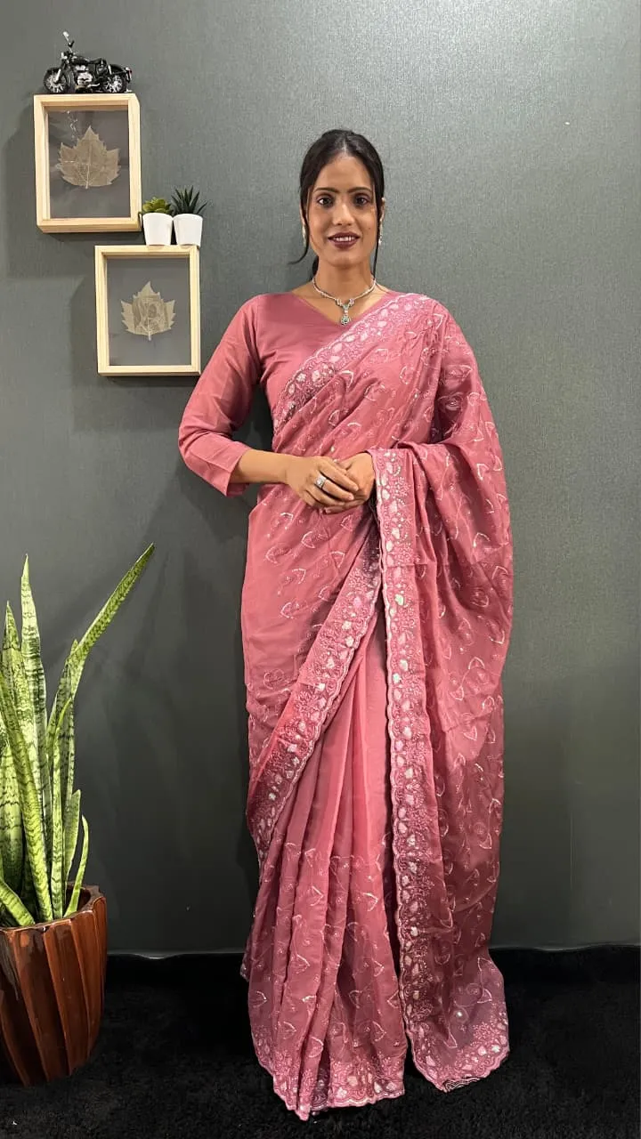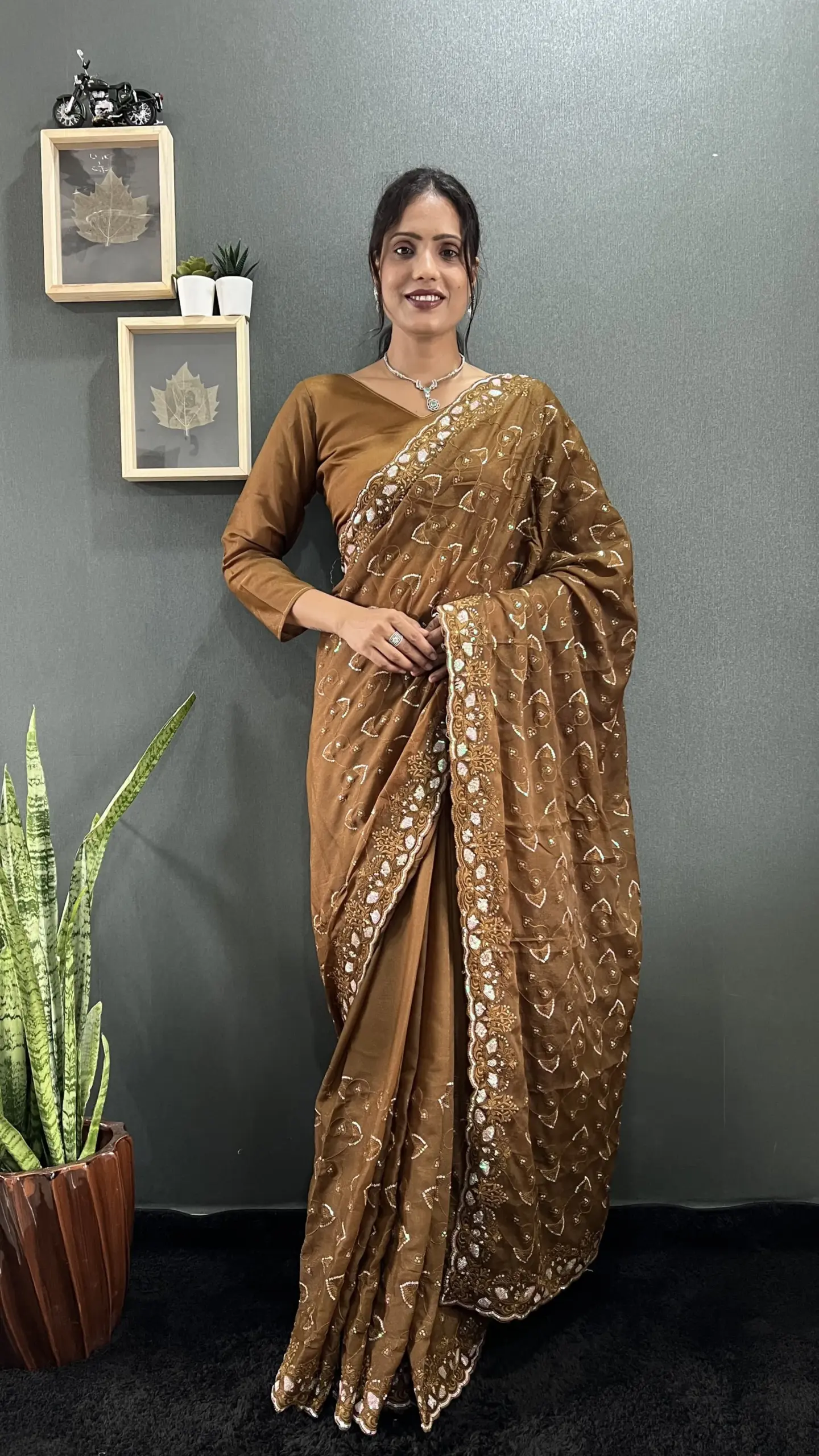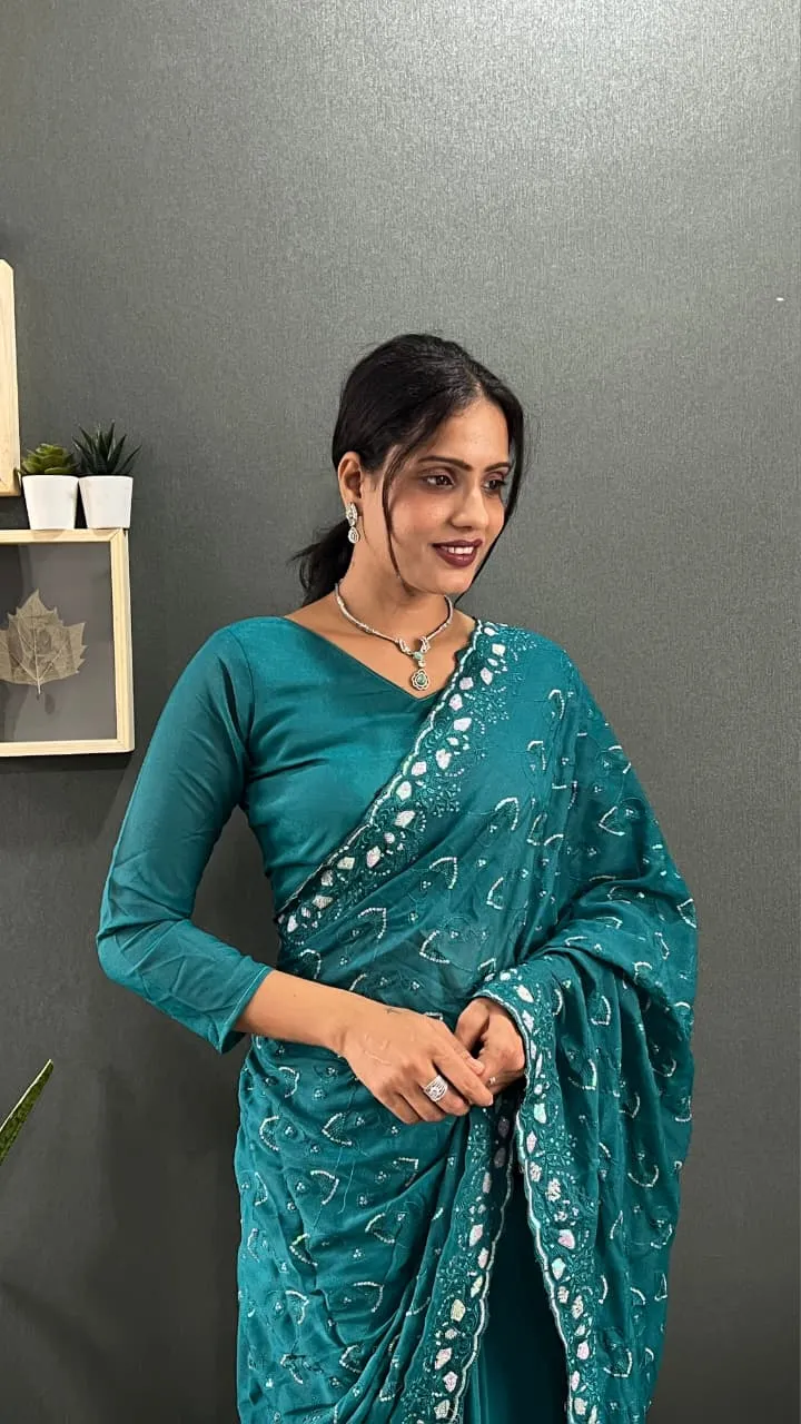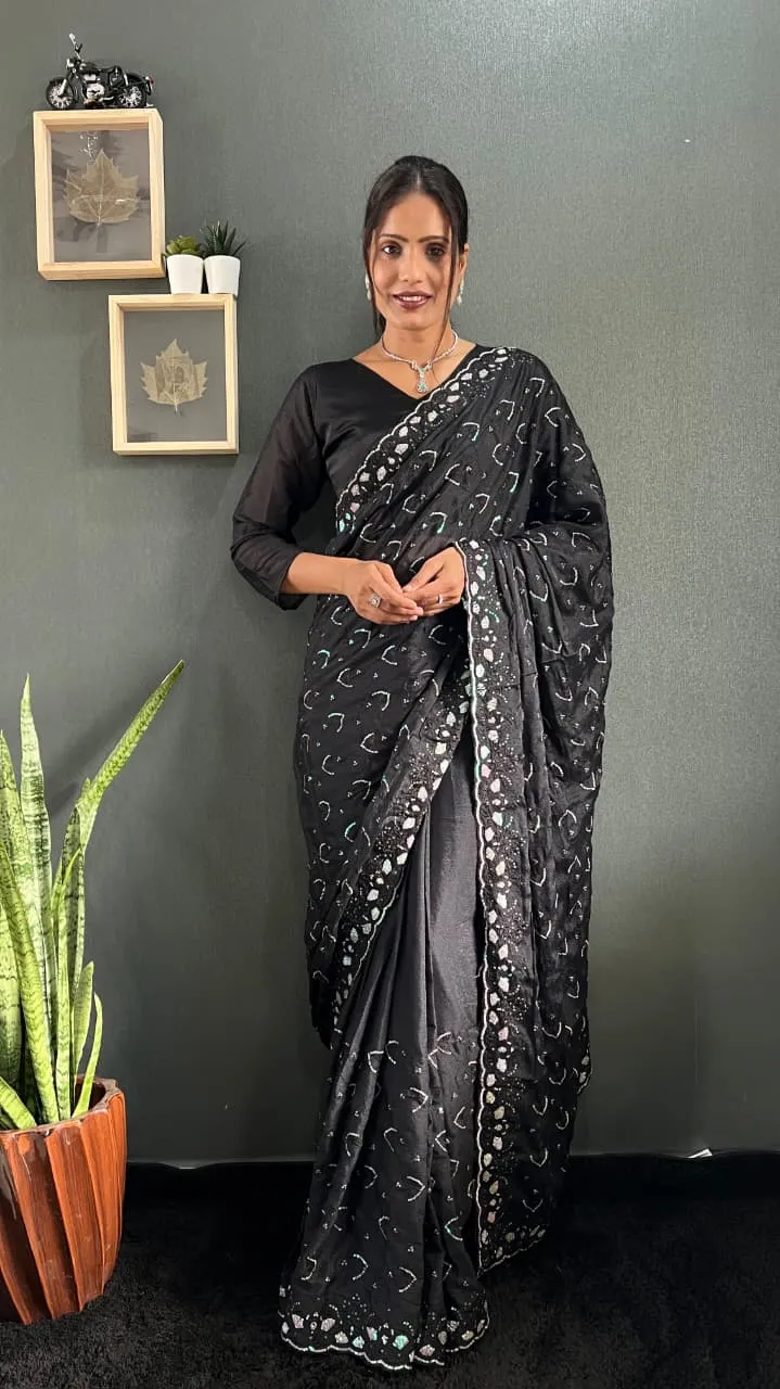 | Saree | Premium Sparkling Georgette Silk Saree with Embroidery Multi Sequence & Cut Work Border (Free Size Up To 44) |