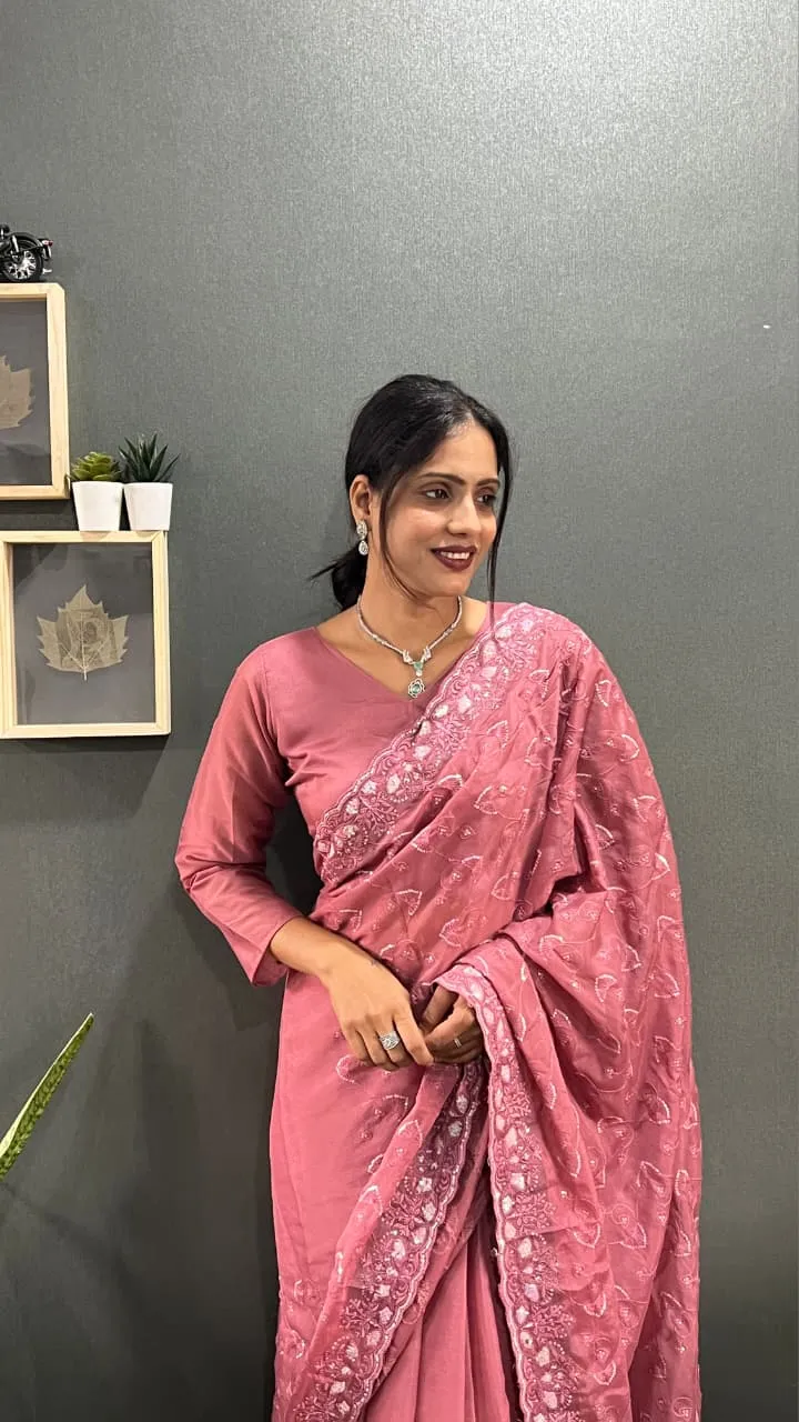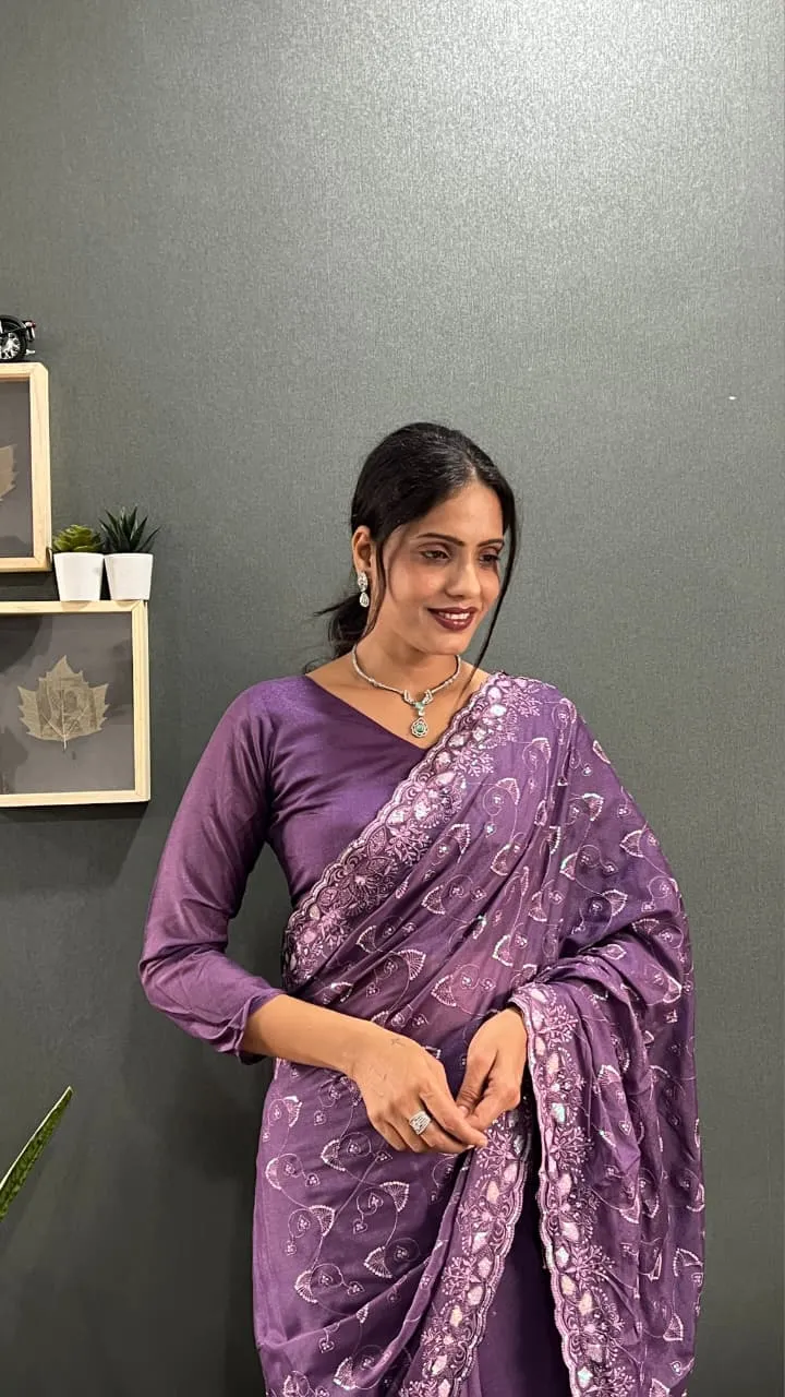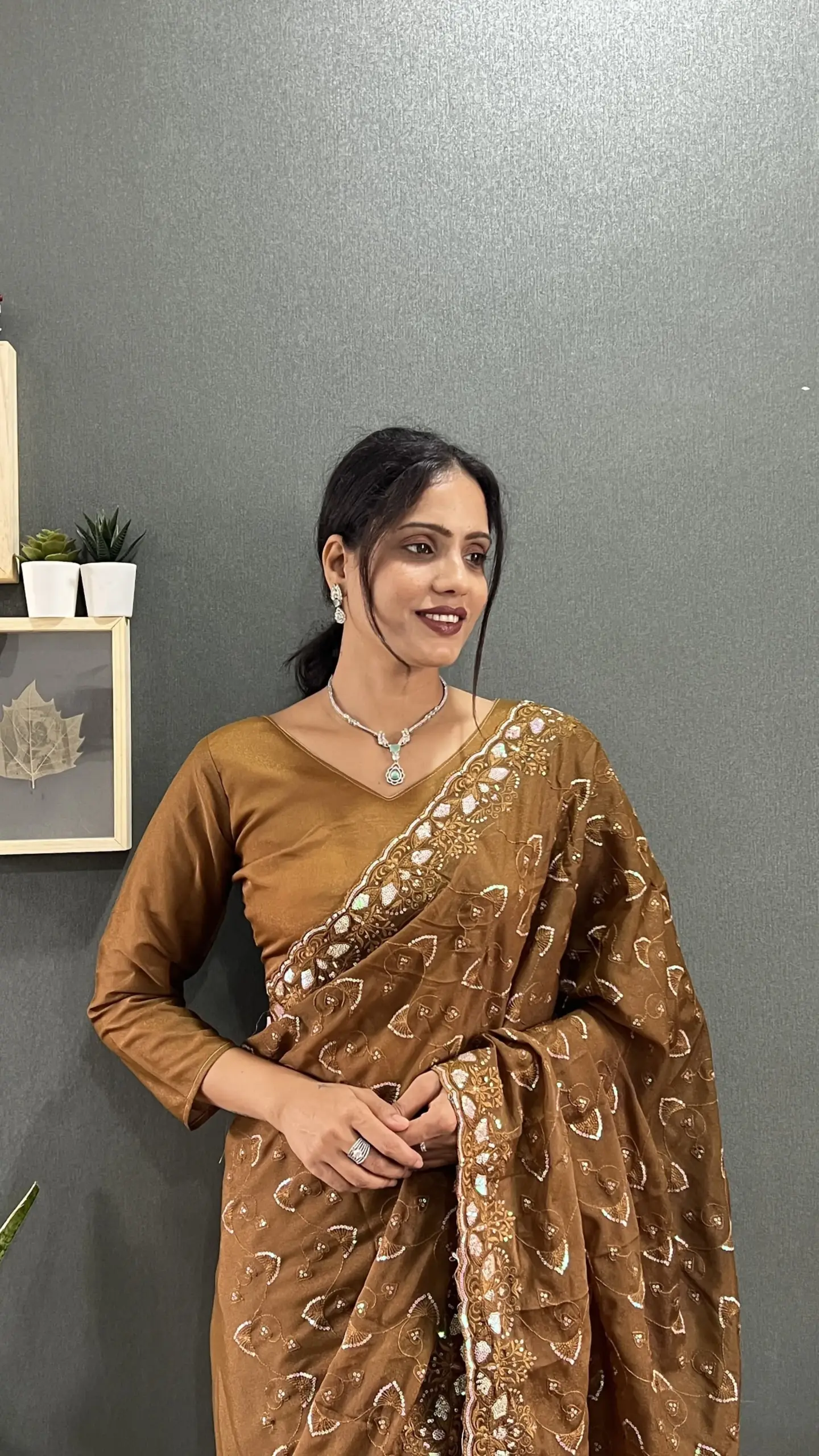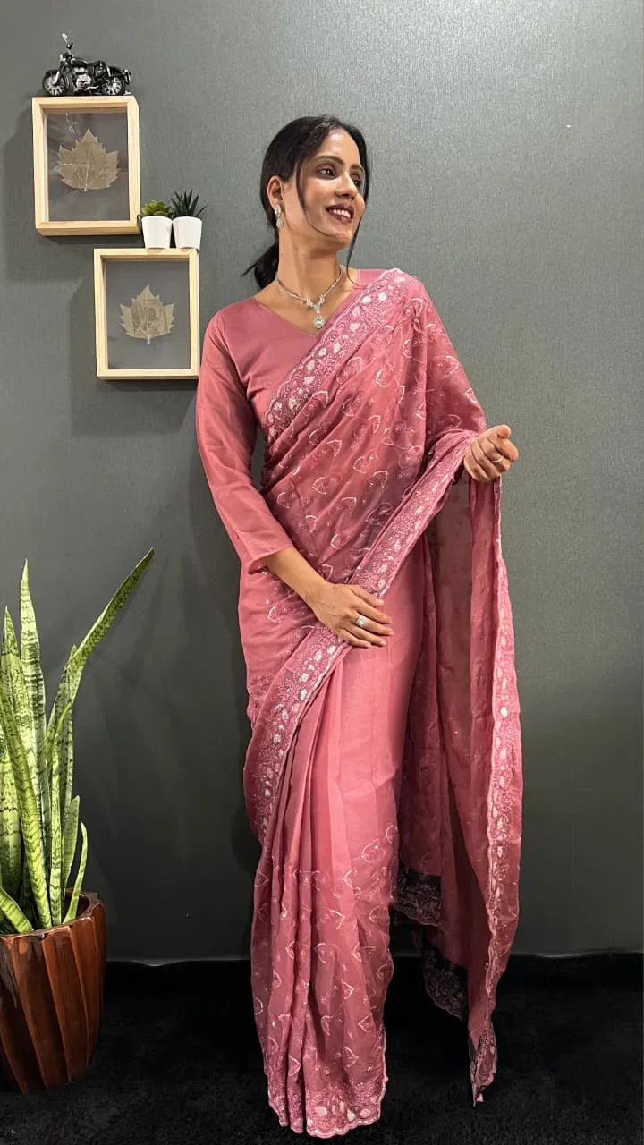 | Saree | Premium Sparkling Georgette Silk Saree with Embroidery Multi Sequence & Cut Work Border (Free Size Up To 44) |
