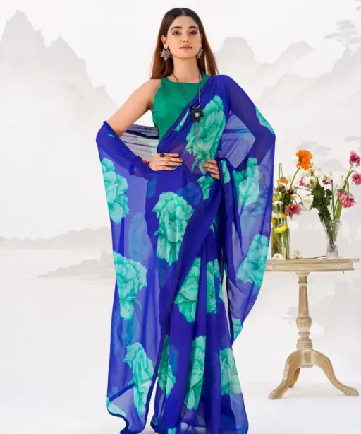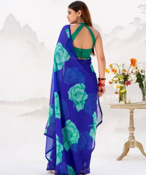 | Saree | Chiffon Floral Print with Lace Border 5.5 meter |