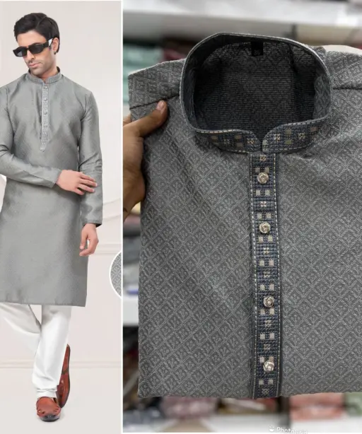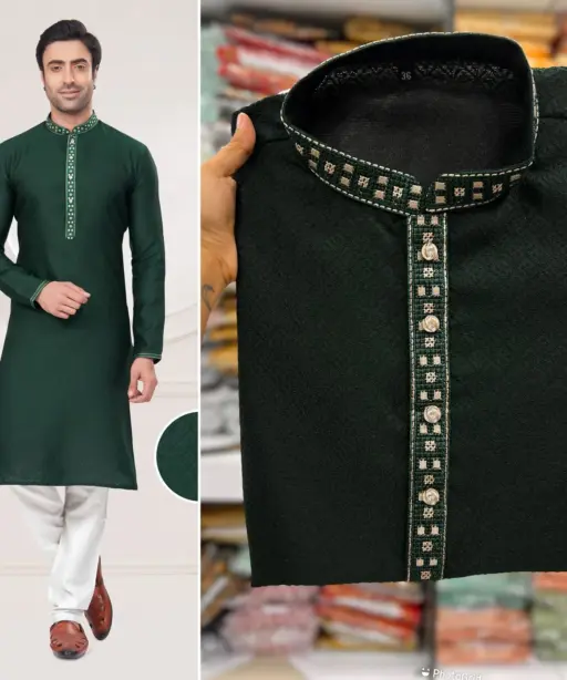 | Kurta | Heavy Silk Jacquard with Heavy Embroidery Work (Boutique Finish Stitching) |