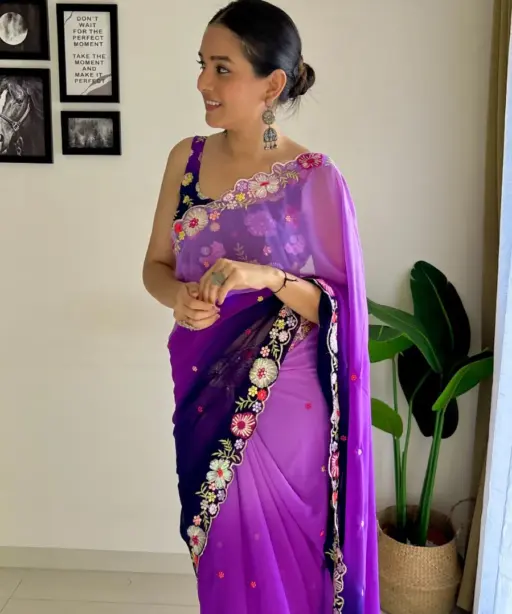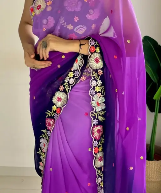 Saree: Faux Georgette with Multicolour Sequence Work & Embroidery Work with Arca Cutting (Length: 5.50 Mtr)