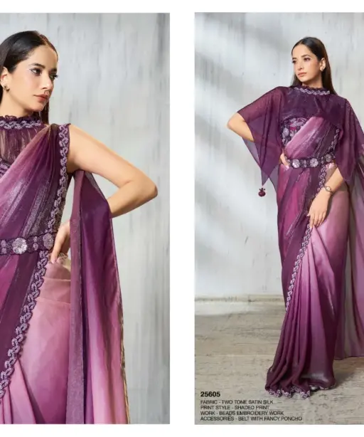 | Saree | Two Tone Satin Silk Beads and Embroidery work |