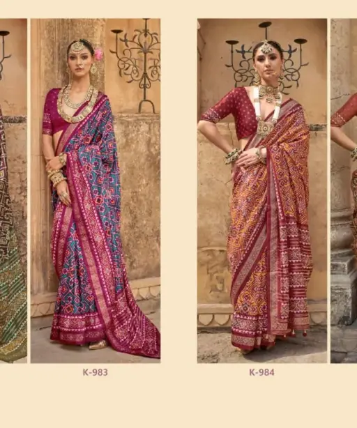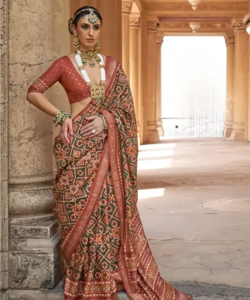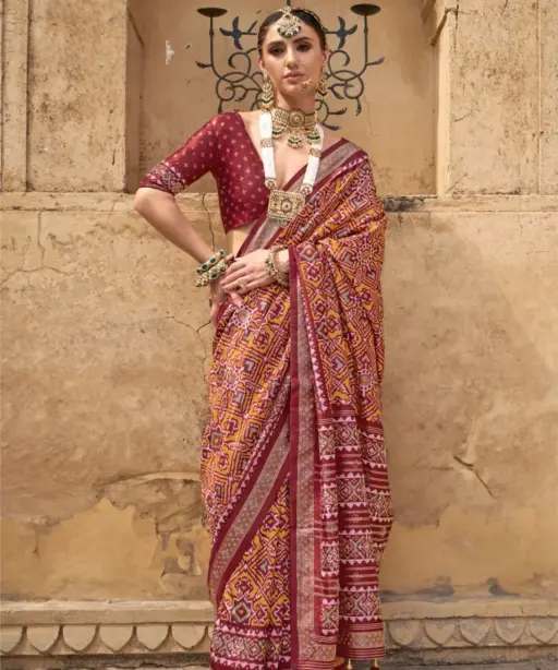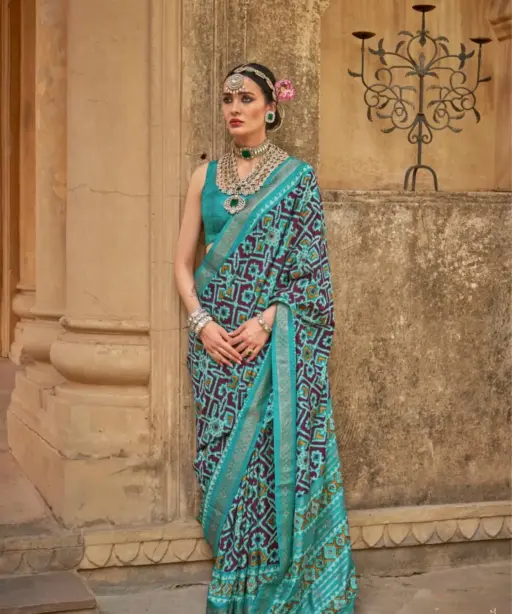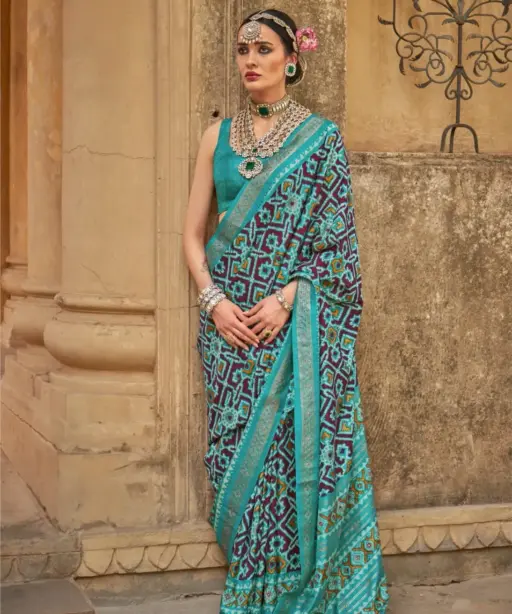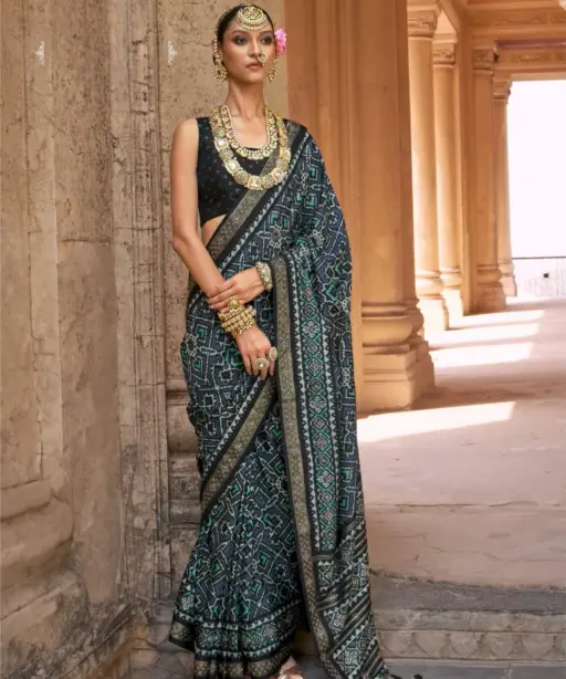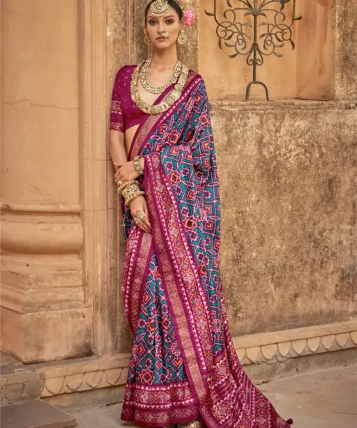| Saree | Super P.V. Silk 8001 with Traditional Patola Design, Stud Work and Apoxy Finish |