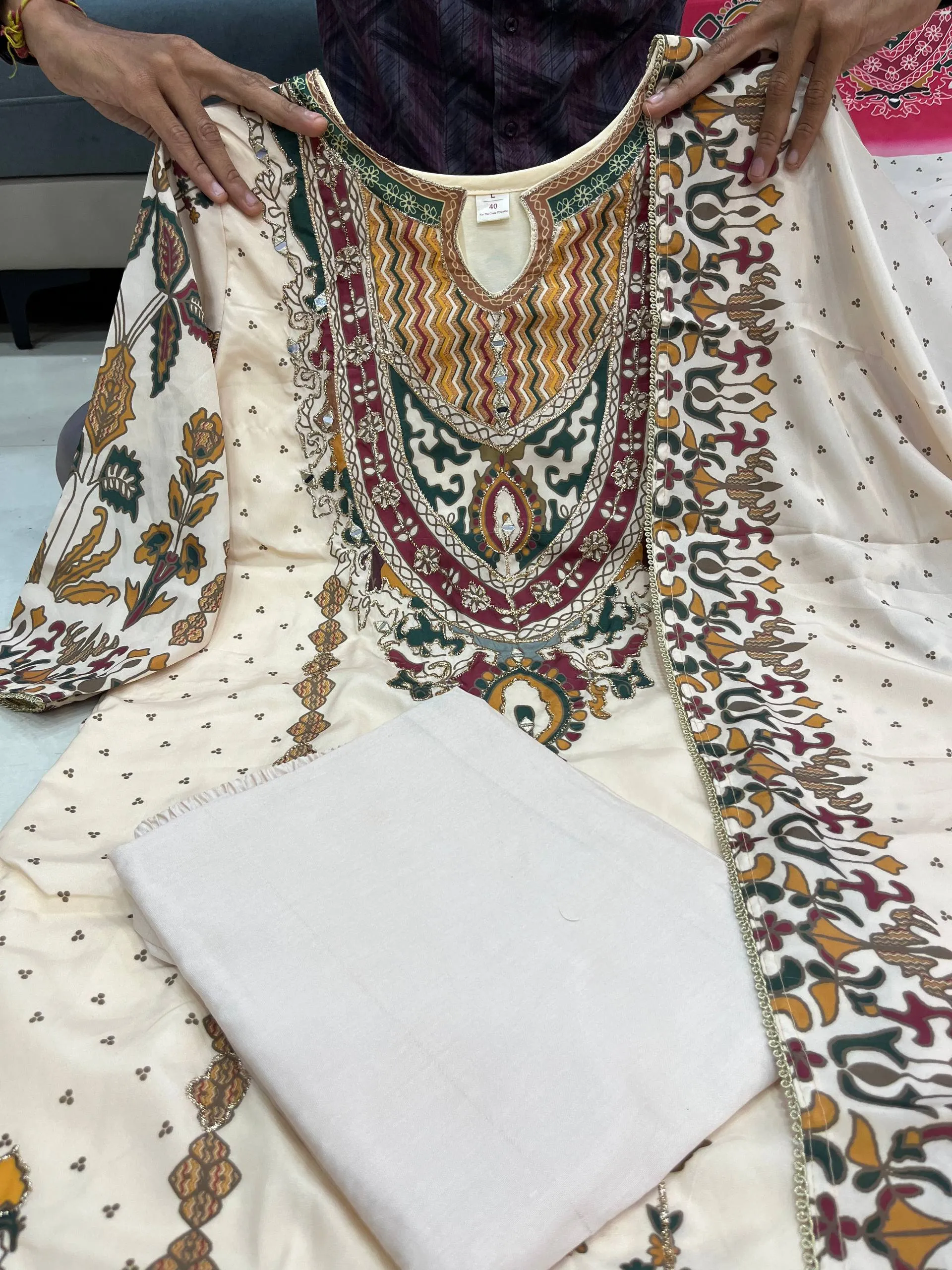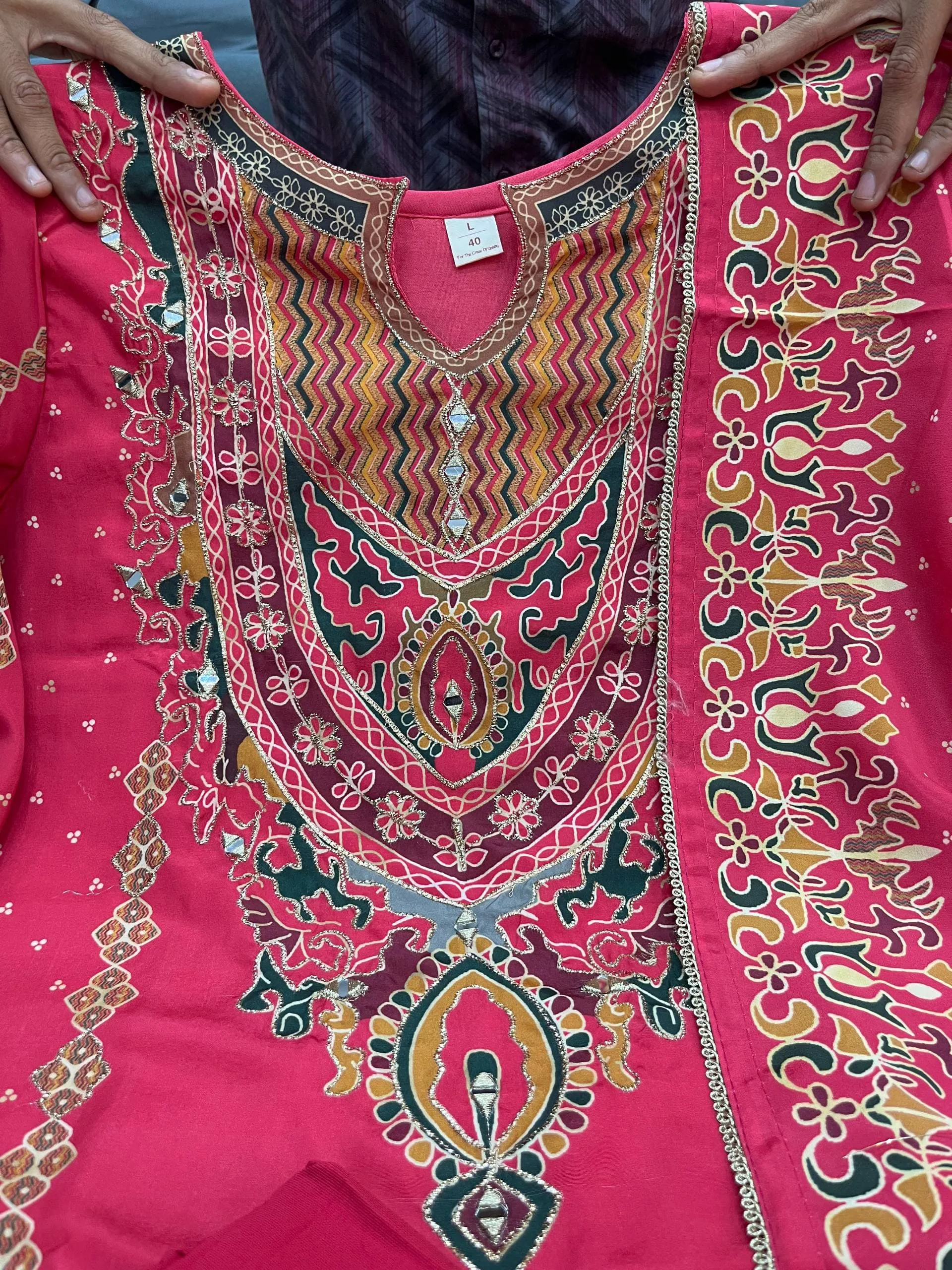 | Top | Pure Russian Silk with Intricate Aari & Hand Work; Full Cotton Lining |