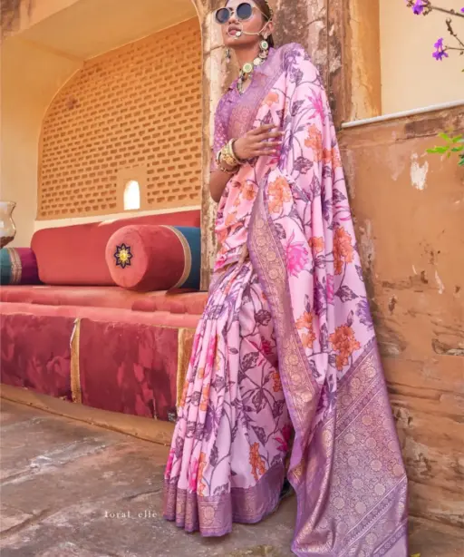 | Saree | Super PV Silk with HB Smart Floral Print XO Pallu and Border |