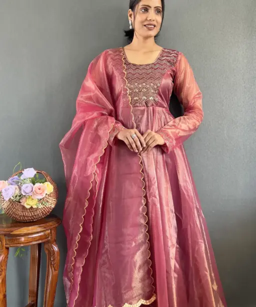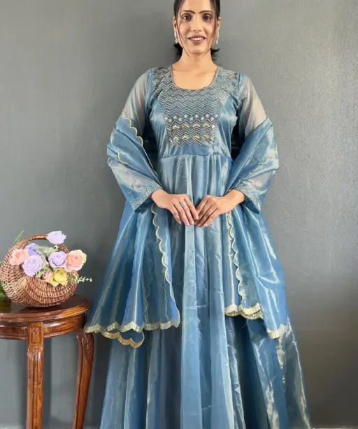 Get your hands on the Premium Tissue Silk Handwork Gown with Dupatta and experience unparalleled elegance. Shop now at EthnicSuits.in for fast shipping, premium customer service, and a seamless shopping experience