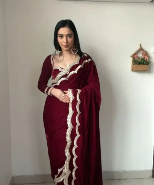 | Saree | Premium 9000 Velvet with Heavy Work Double Lace Border Work (Ready to Wear) |