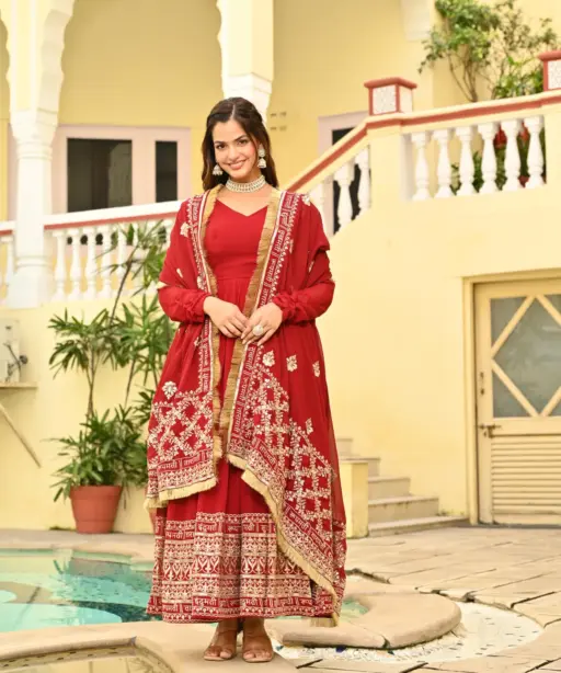Premium Wedding Special Red Anarkali Gown