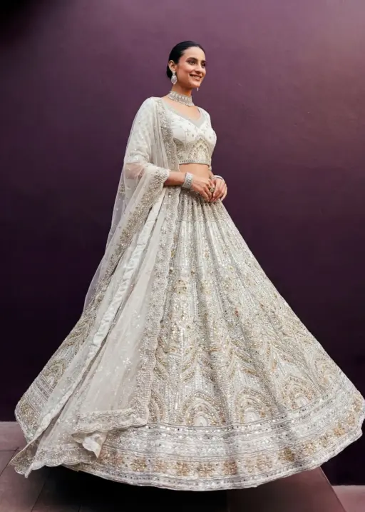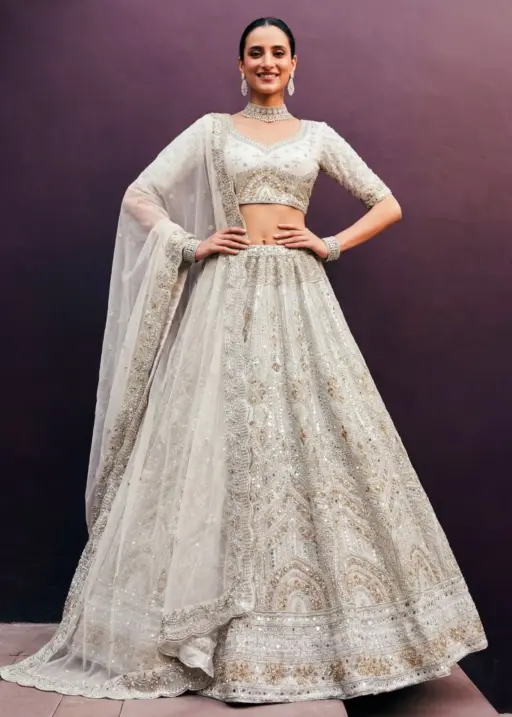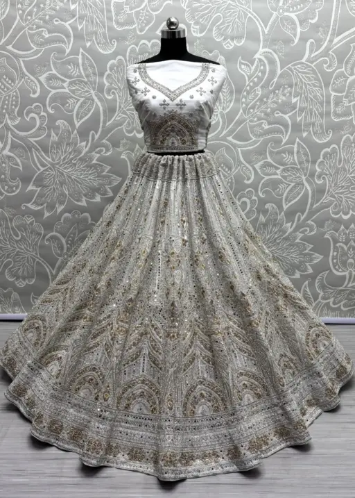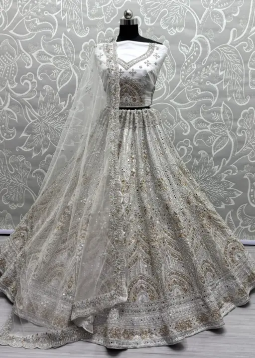 | Lehenga | Heavy Net Dori Embroidery Zari Thread work Real Mirror work Full of Zircon Studded standard cancan and canvas attached free size lehenga |