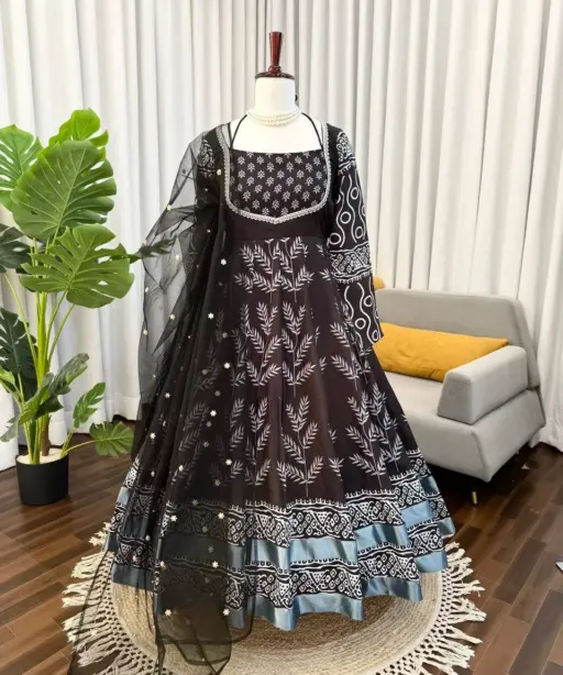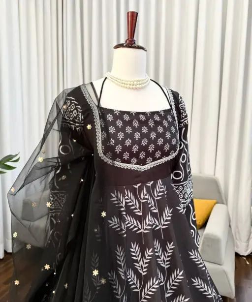 TopNatural crep Digital print Length: 52-inch Flair:4 meter