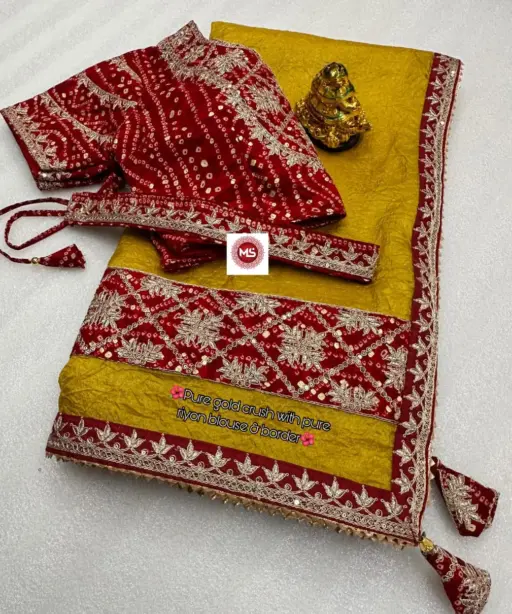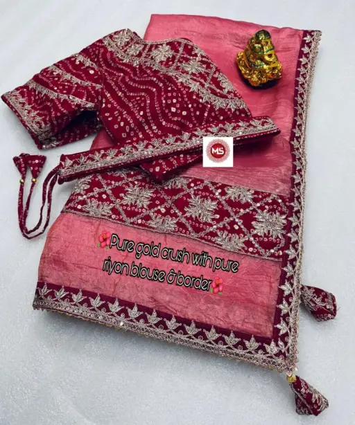 Pure Gold Crush Wedding Saree With Stitched Blouse And Belt