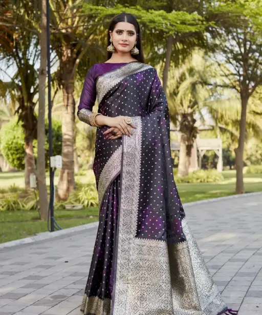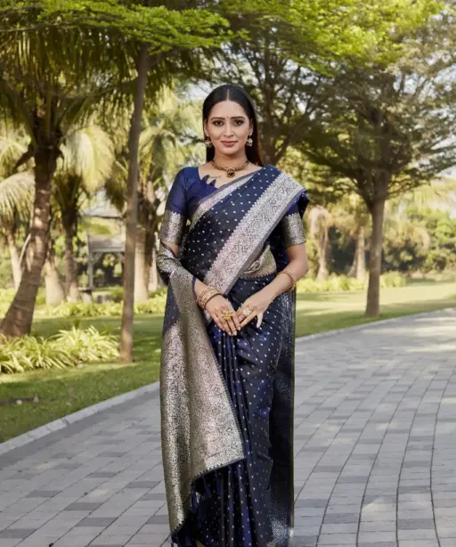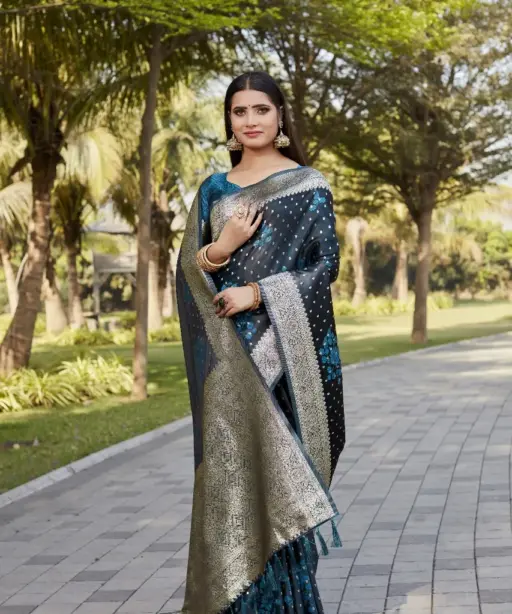 | Saree | Pure Kanjivaram Soft Satin Silk with Beautiful Weaving Butta Work, Designer Border, and Rich Woven Pallu |