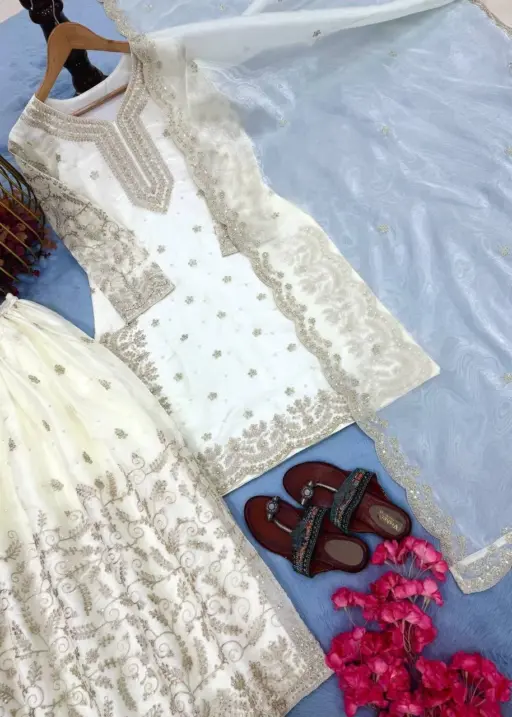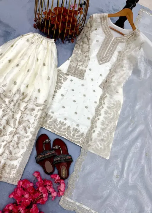 | Dupatta | Pur Jmy Silk with Heavy Embroidery 3 mm Sequence & Coding Dori Work 2.20 Mtr Length |
