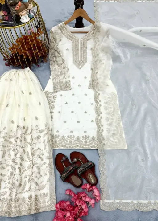 Pure White Pearl Work Pakistani Kurti Set