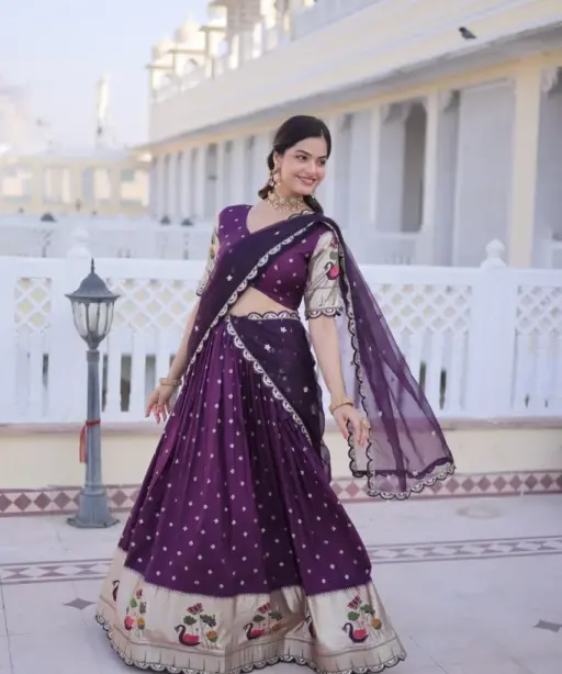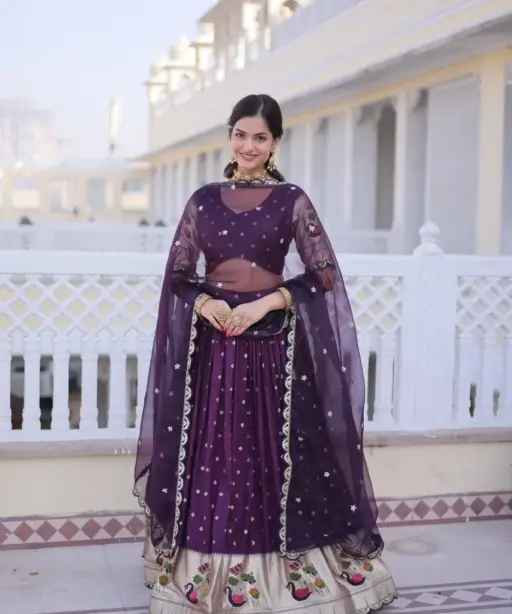 Purple Dola Silk Wedding Lehenga Set