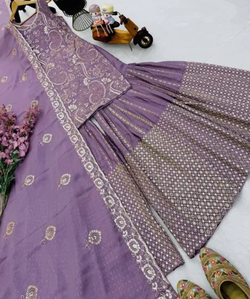 | Bottom | Chinon Silk Sequence Embroidery LENGTH 42 Inch |