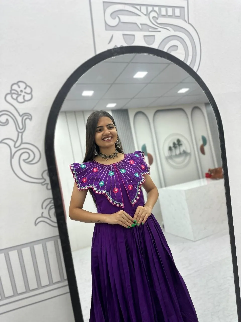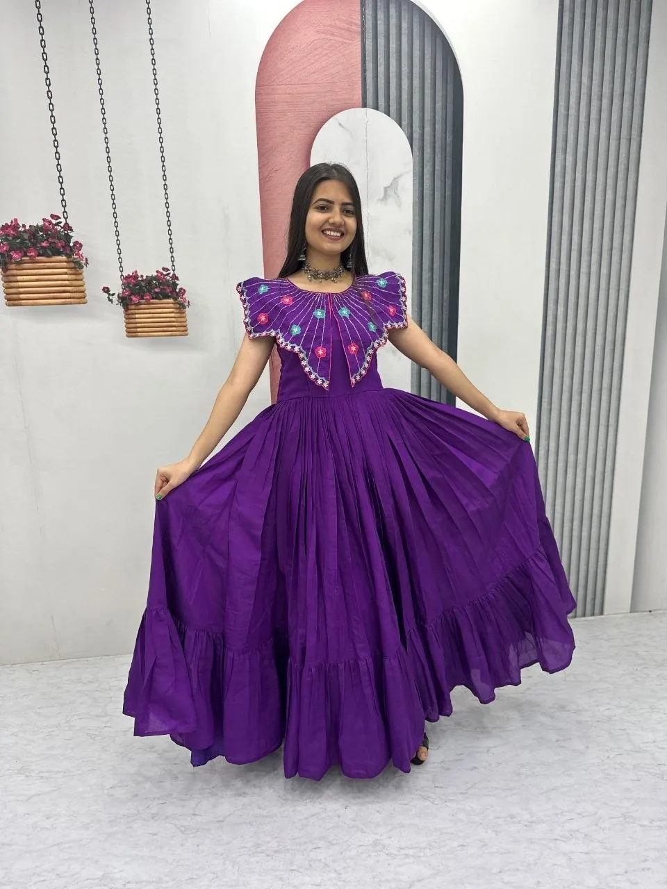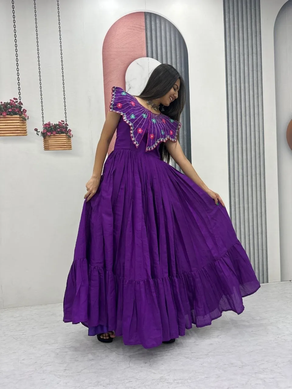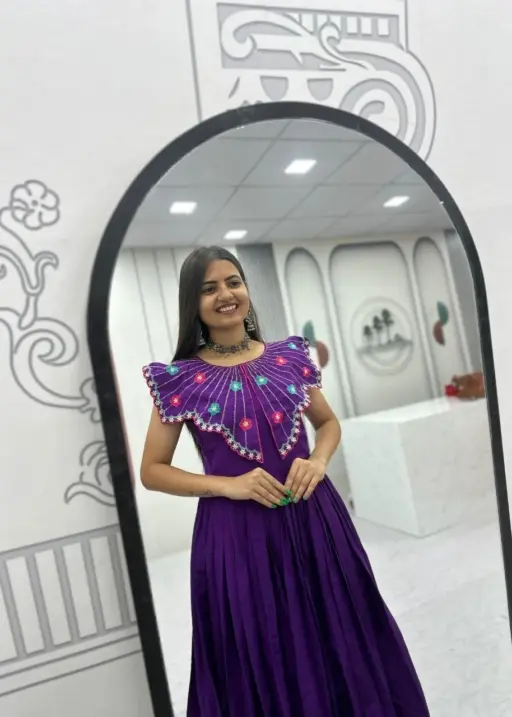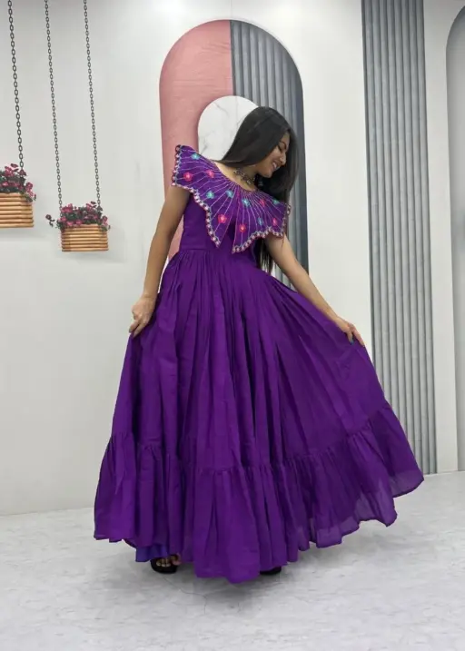 Purple Handwork work Butterfly Neck Gown