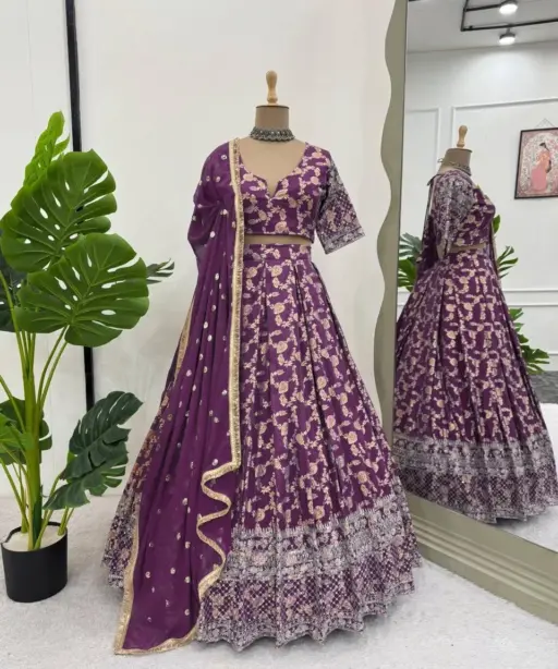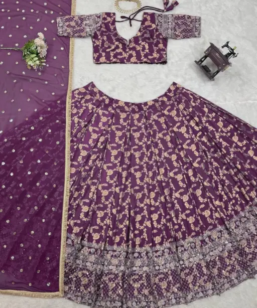 | Lehenga | Jacquard thread with Sequence Semi-Stitch with cancan with canvas Pata |