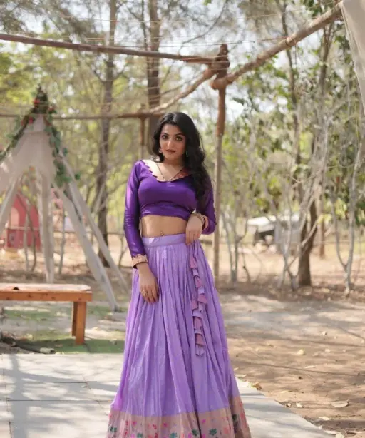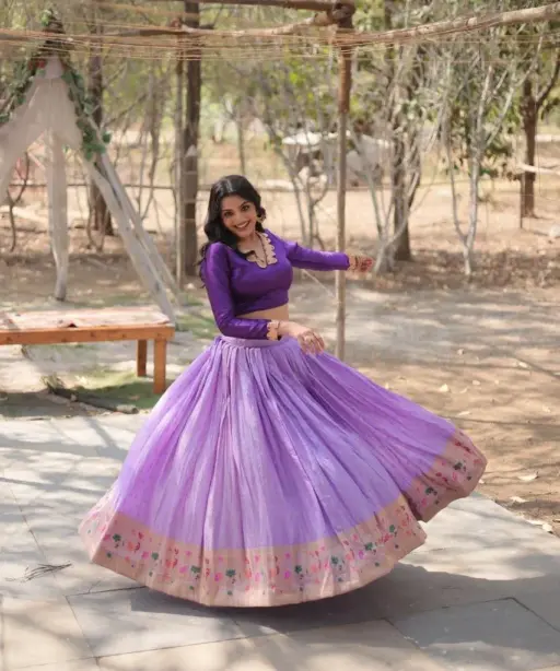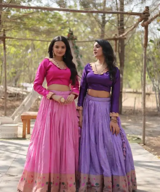 LehengaFull Stitched Pure Dayble Viscose Jacquard With Kalamkari Jari Border Length 42” Waist 42” Flair 3.5 Mtr