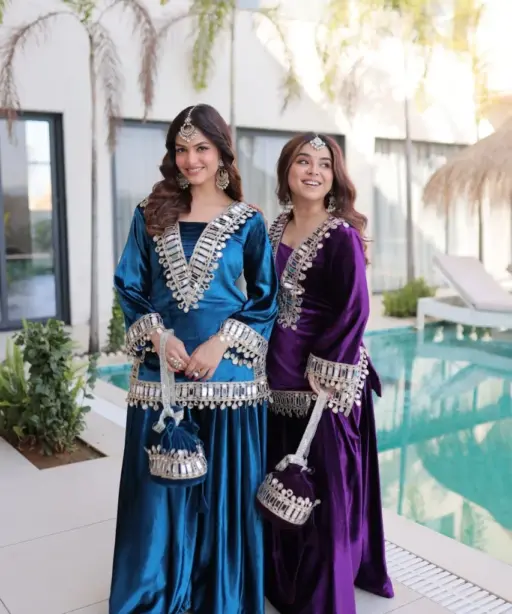 TopIce Velvet with Rich Zari Embroidered & Real Mirror work 32 INCH Length