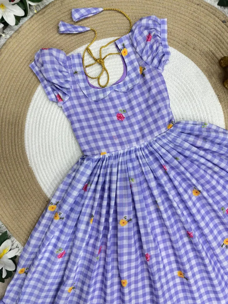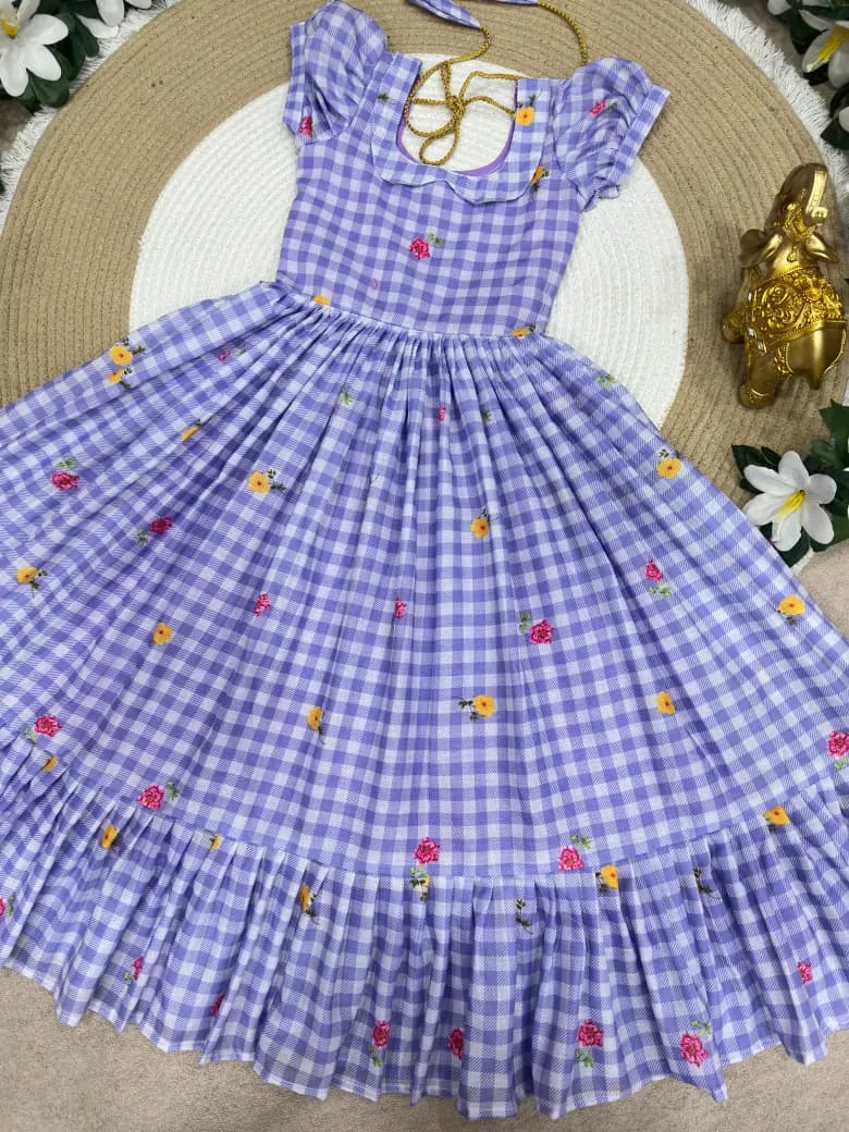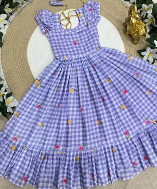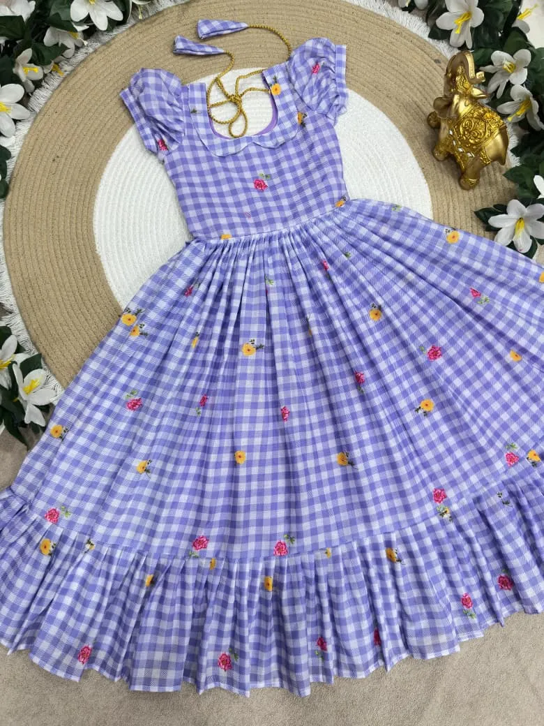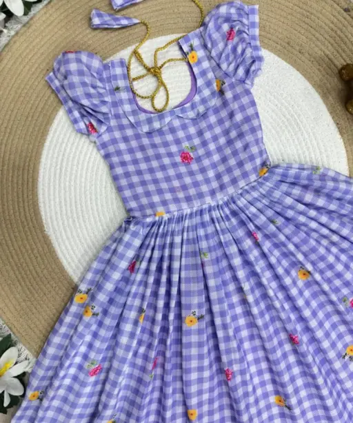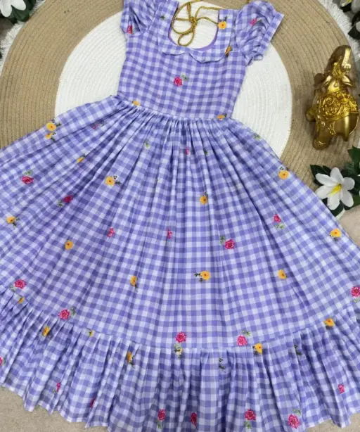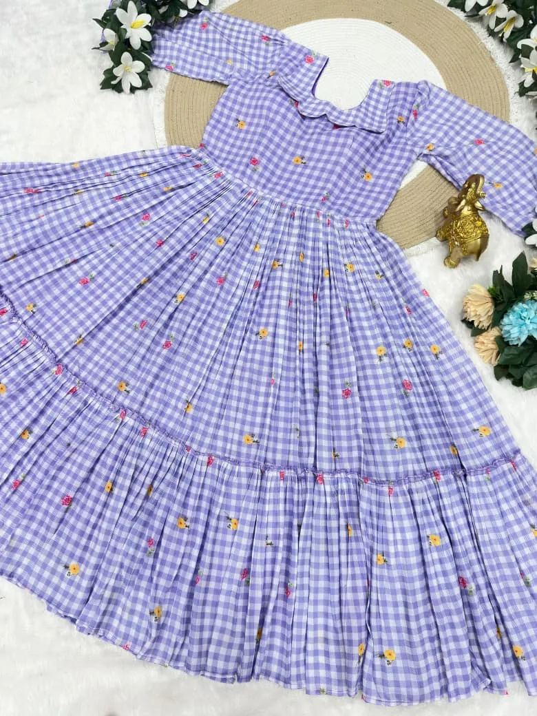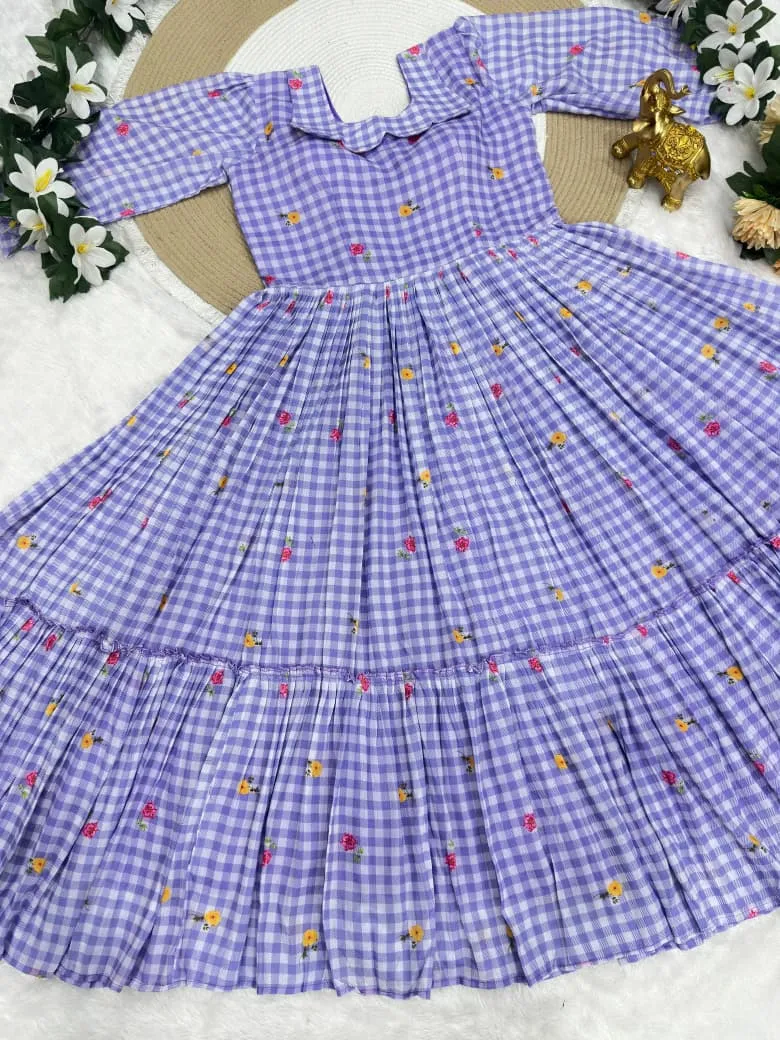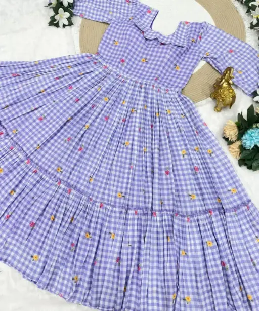| Fabric | Beautifully Mul Chanderi Stitched Checks Print Gown & Beautiful Sleeves |