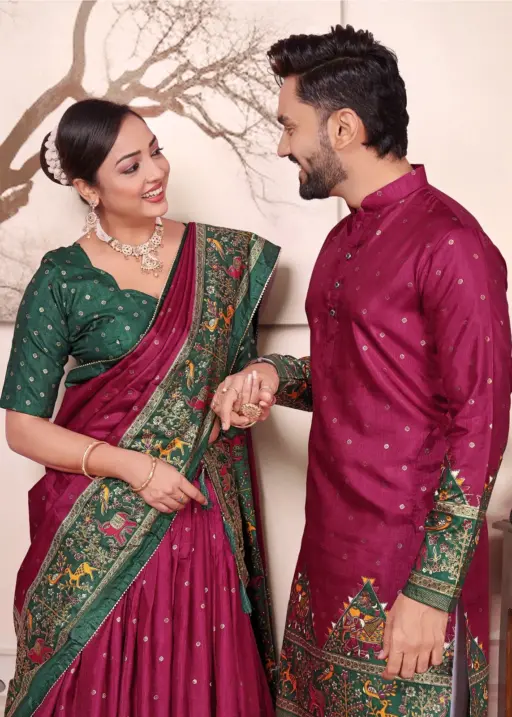 Purple Patola Printed Couple Combo Lehenga and Kurta