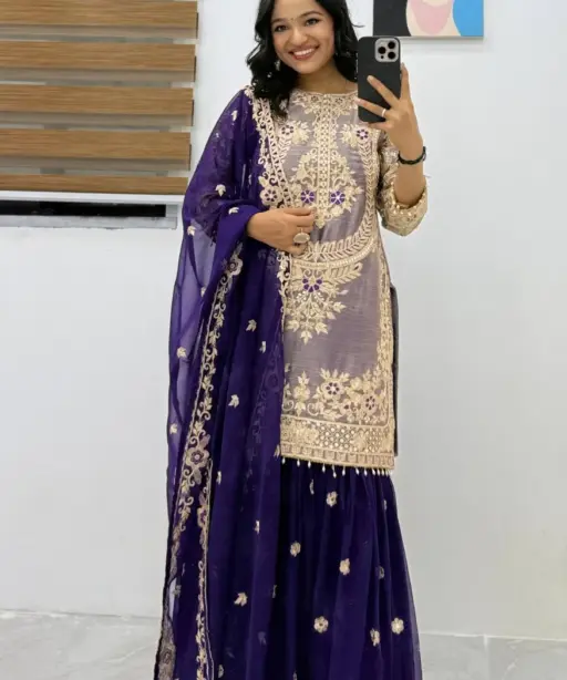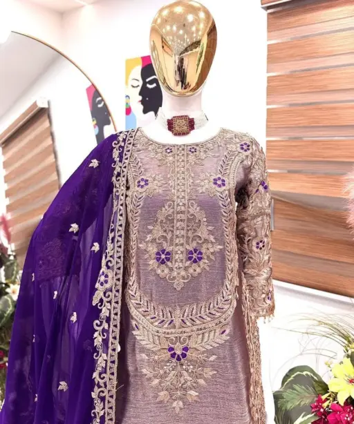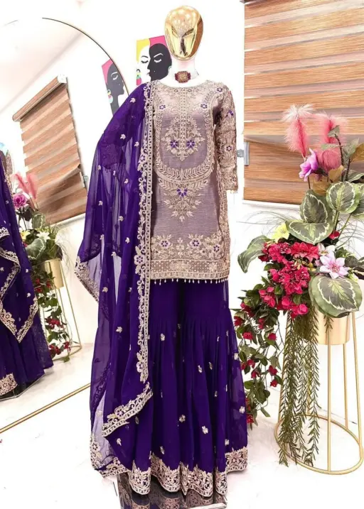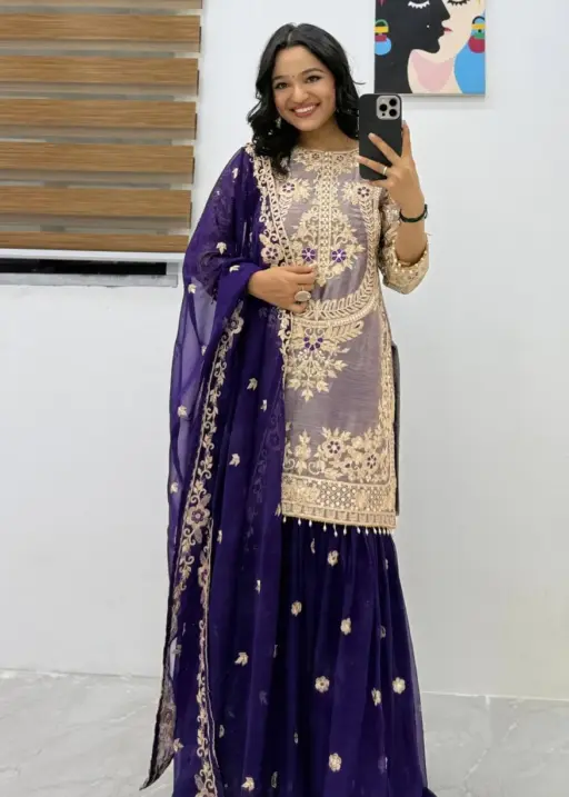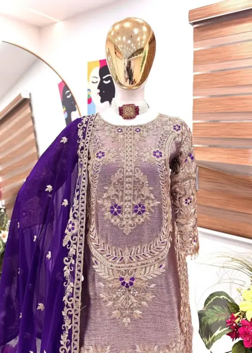 | Top | Crancy Silk Codding Embroidery Sequence Work 38 Length |
