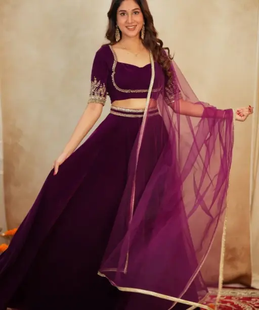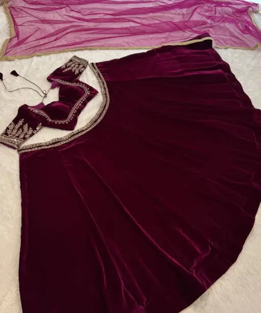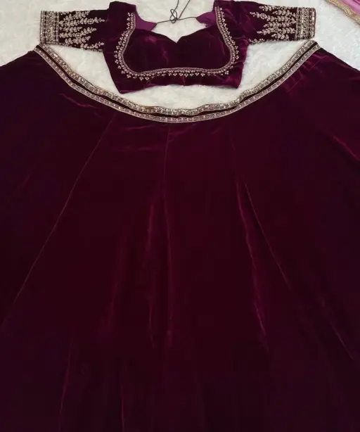 | Lehenga | 9000 velvet lehenga with Dori & sequins border work on waist can can attach, 3.5 meter flair |
